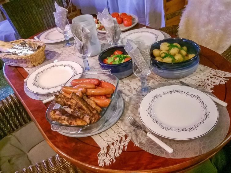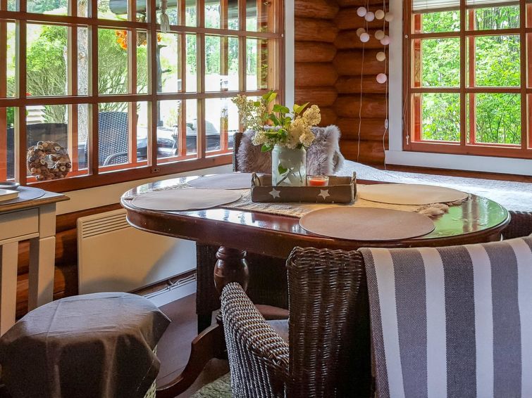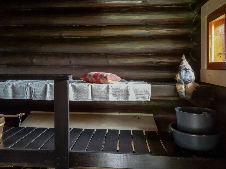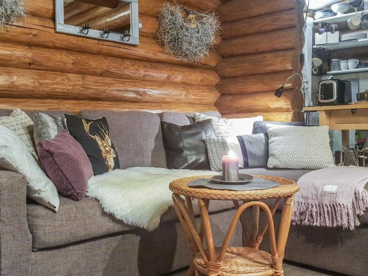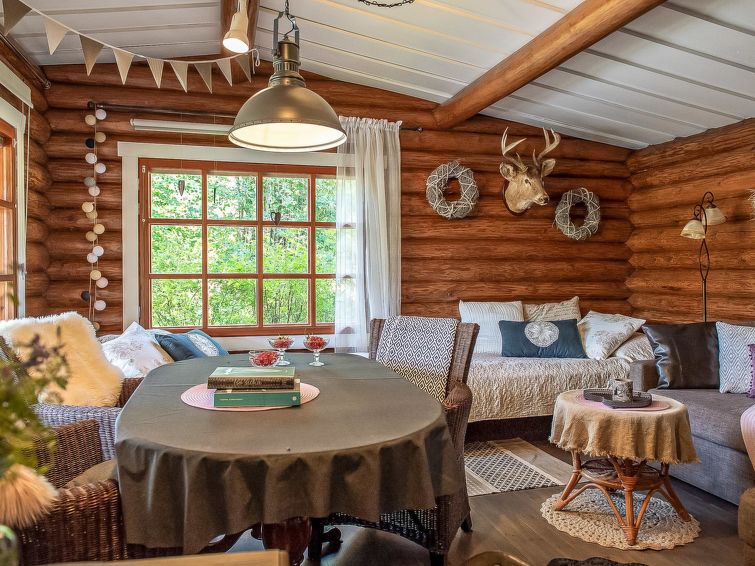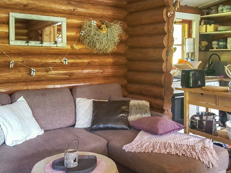 Log cabin 1978, living room/kitchen with 2 beds + convertible sofabed, dressing room, sauna, open veranda. Note! Only 1 small pet allowed. No big dogs. Distance to the lake Kuivajärvi 2 km. Situated close to a farmhouse. Bicycles included in the price.