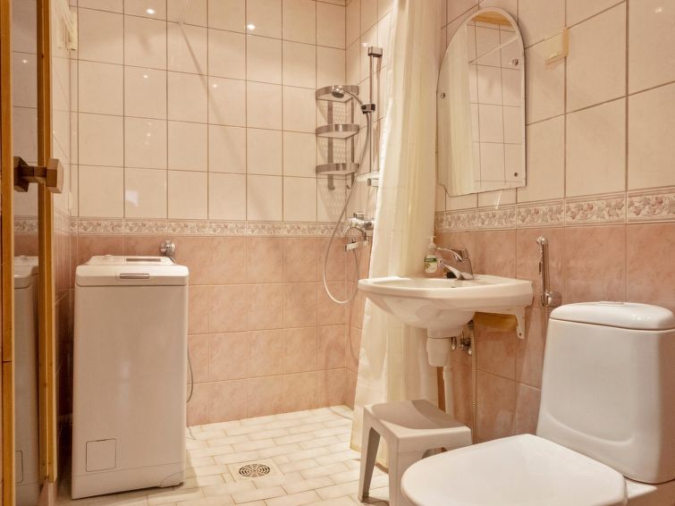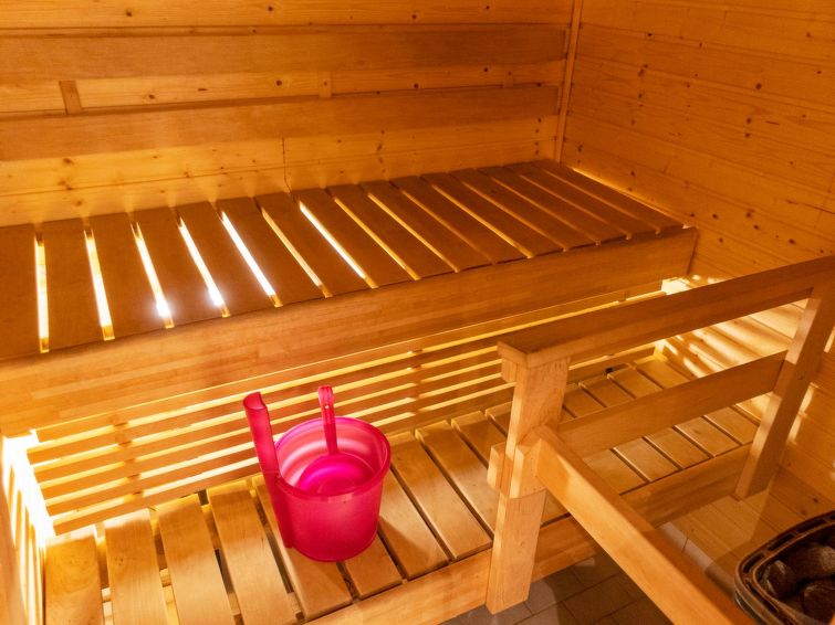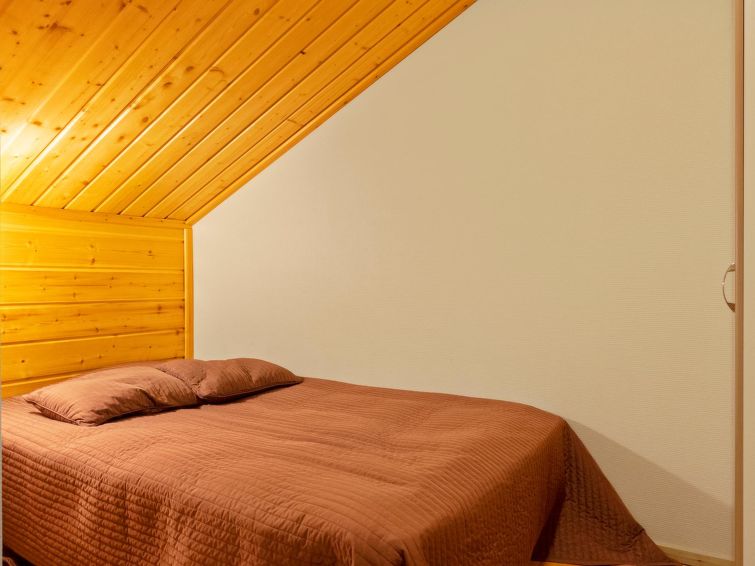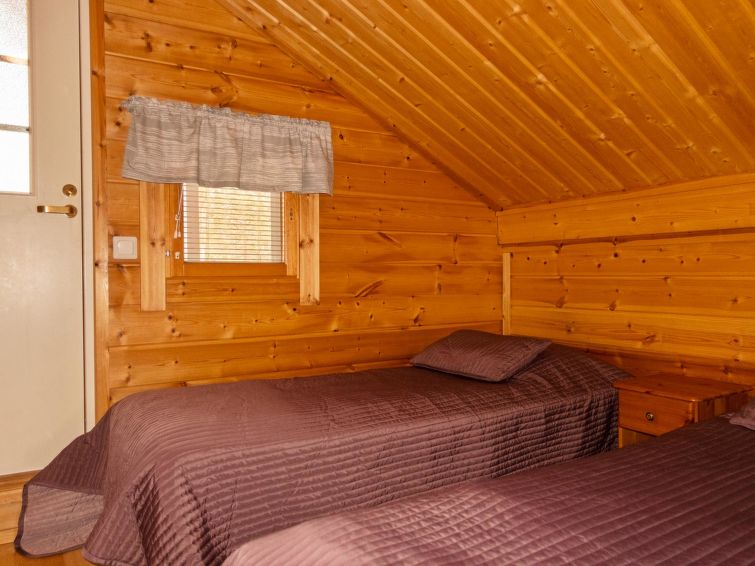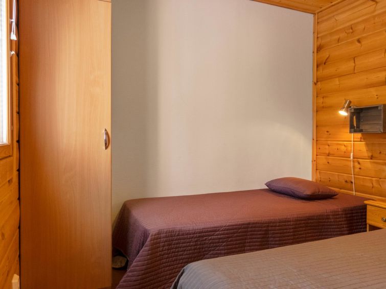 Two storey apartment; on the ground floor kitchen-living room, bedroom with 2 single beds, sauna (electric stove), shower room / wc. Upstairs bedroom with 2 single beds, one bedroom with one bed (width 120 cm) Note! This bedroom doesn't have a door at all, a loft with 2 mattresses, balcony.