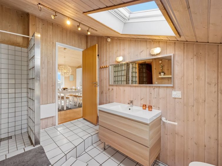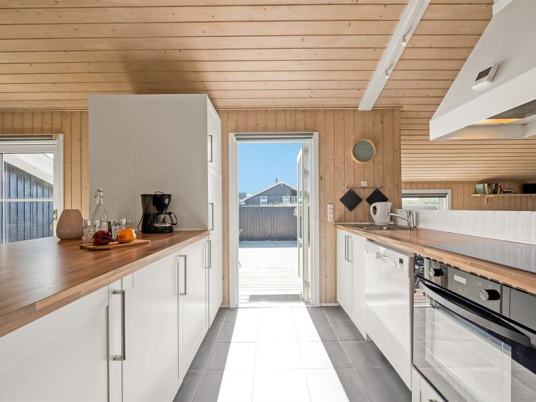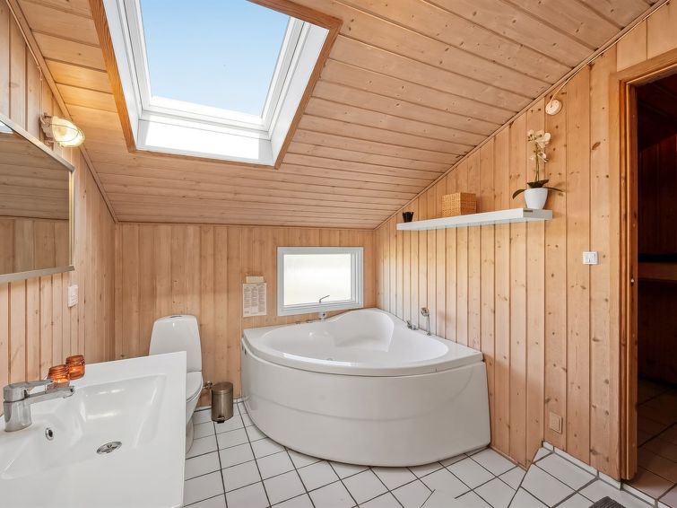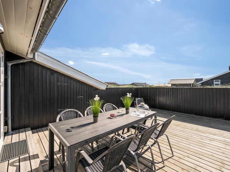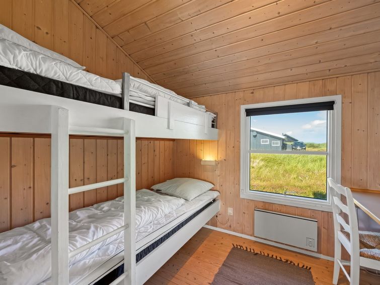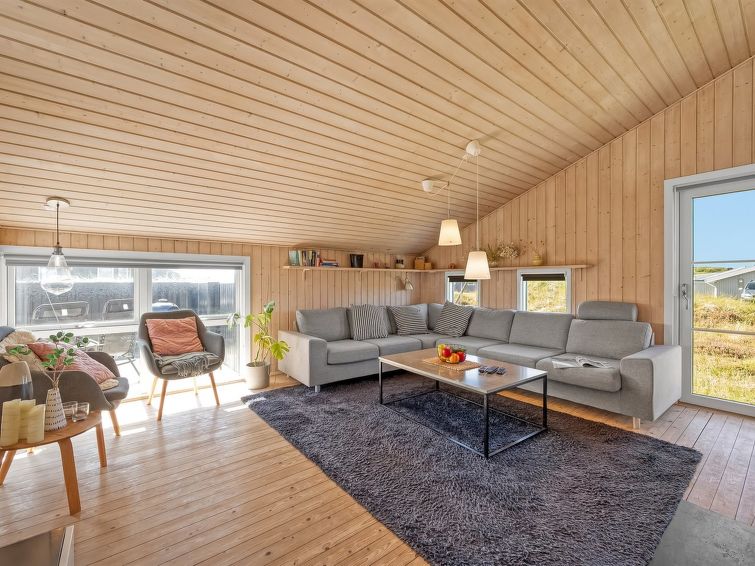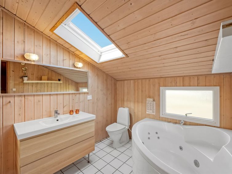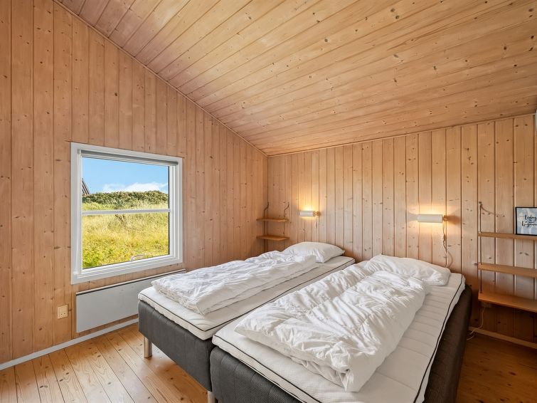 "Hjalma" - from the sea in Western Jutland", 4 rom hus 110 m2. Passer for 8 voksne + 1 barn. Stue med, TV, CD-spiller, stereoanlegg og DVD. 1 rom med, 1 dobbeltseng. 1 rom med 2 senger. 1 rom med, 1 x 2 køysenger. 1 rom med, 1 dobbeltseng. Kjøkken (stekeovn, oppvaskmaskin, 4 keramiske kokeplater, mikrobølgeovn, frys). Dusj/WC, boblebad. Fasiliteter: høy barnestol barneseng (ekstra). Internett (trådløs LAN [WLAN]). Vennligst merk: røykfri bolig. Max kjæledyr / hund tillatt 1 kjæledyr / hund tillatt.