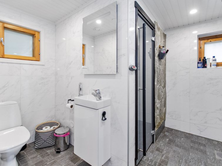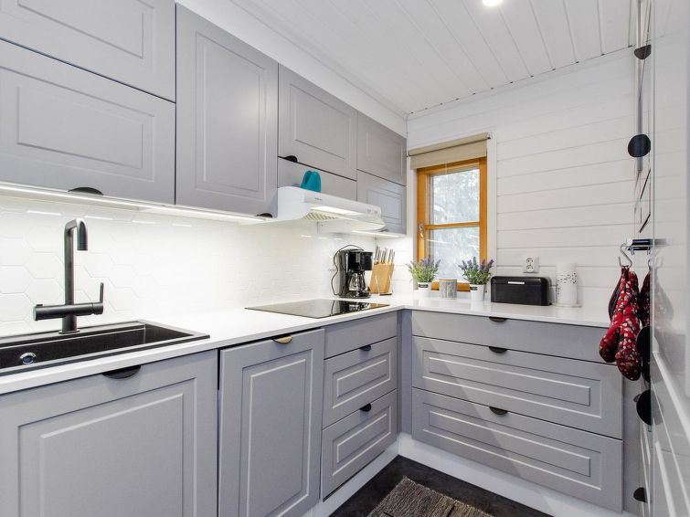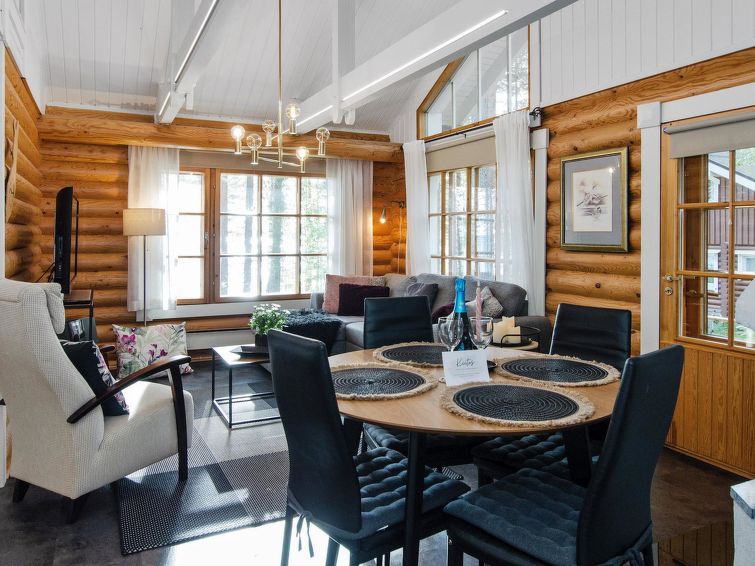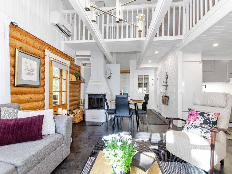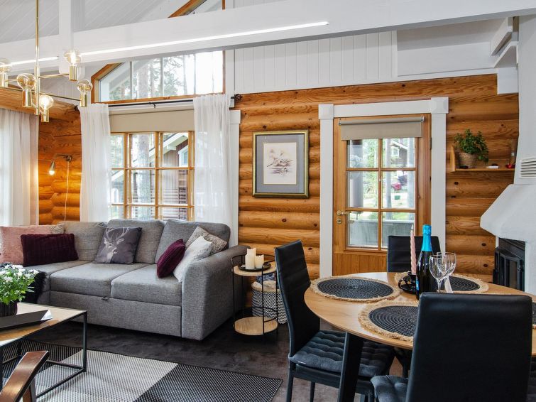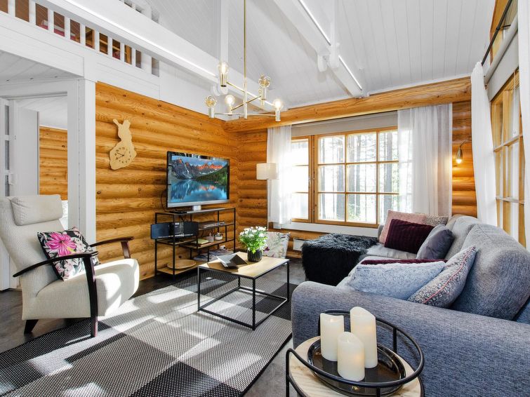 Up to 2 small dogs (max. 5 kg each) are allowed. The loft is equipped with child safety gate. The cabin is surrounded by pine forest terrain. Illuminated ski trail, mountain biking routes, and hiking trails are located approximately 200 m away. The Ukko-Koli ski slopes are 9.5 km away.