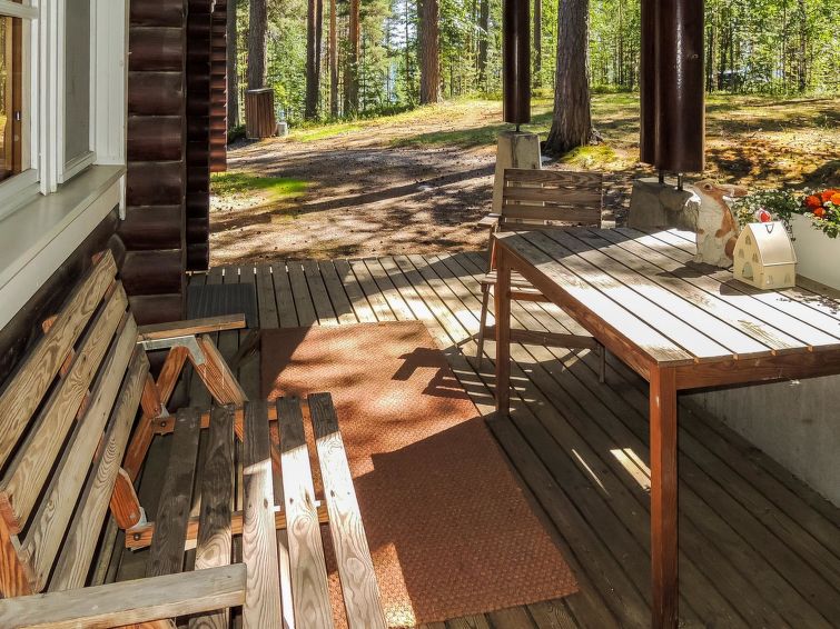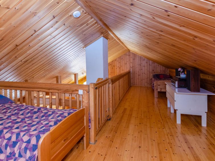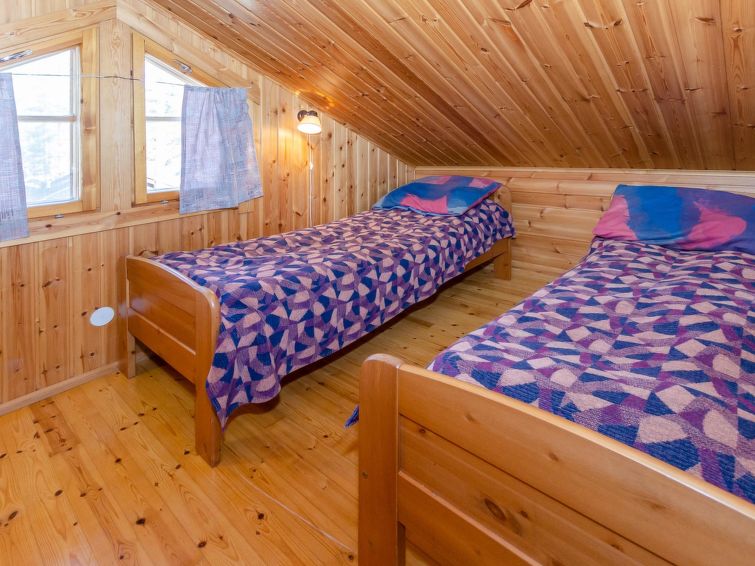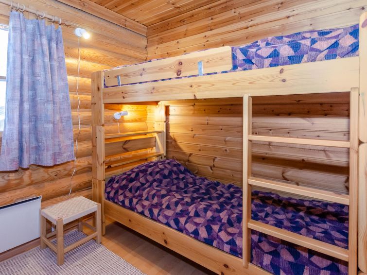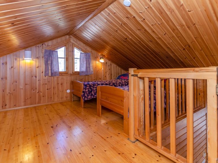 77 km north of Joensuu, Lake Pielinen 100 m (871,2 km2) common beach with gently deepening sand bottom and some rocks. Common jetty with the other Honkakoli cottages. Round log cottage 1990, kitchen-living room, bedroom with two beds, bedroom with bunk bed, sleeping gallery (18 m2) with three beds, washroom, sauna (elec. stove) and terrace. Cozy log cottage by the Lake Pielinen in the Loma-Koli cottage area. Suitable for families with children. The sleeping gallery has a gate before the ladders and children’s bed and high chair can be rent separately. Hilly surroundings with pine trees. Common beach for swimming 200 m. Good possibilities for winter sports; Ukko-Koli slopes 9,5 km. Reservations start at 16.00 and end at 12.00 (also in weekend bookings).