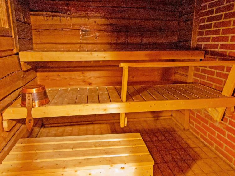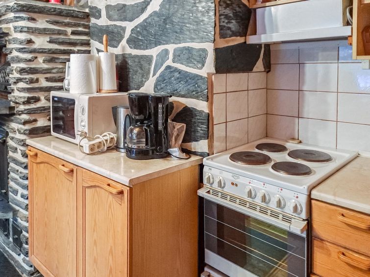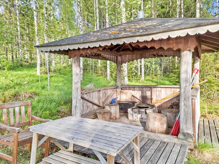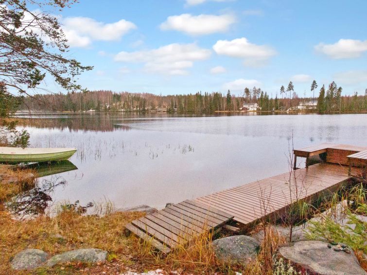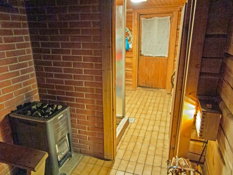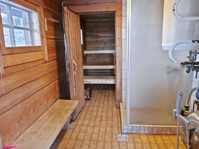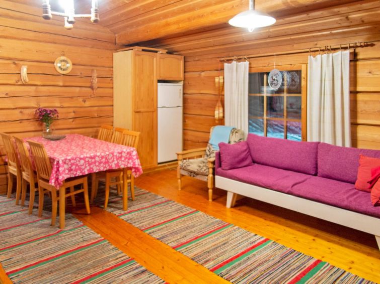 Log cabin 1992, living room/kitchen with 1 extra bed (covertible sofa), bedroom with double bed, small bedroom with bunk bed, washroom, sauna, open veranda. Access to the sauna and washing room through porch. There is an air source heat pump with cooling and warming functionality in the cabin. Wifi.
