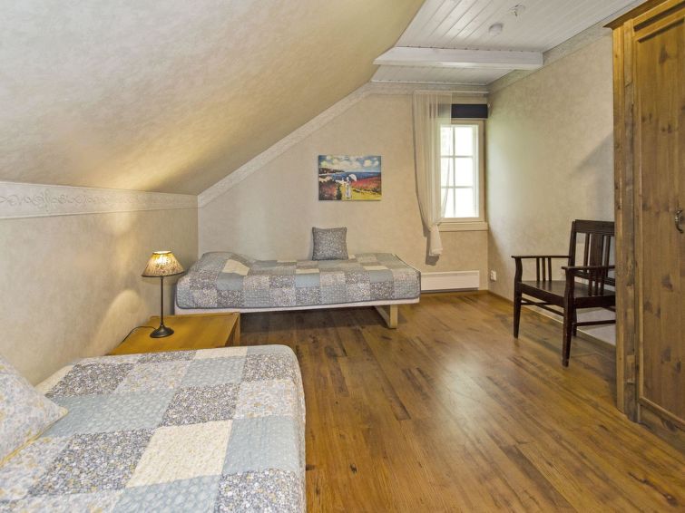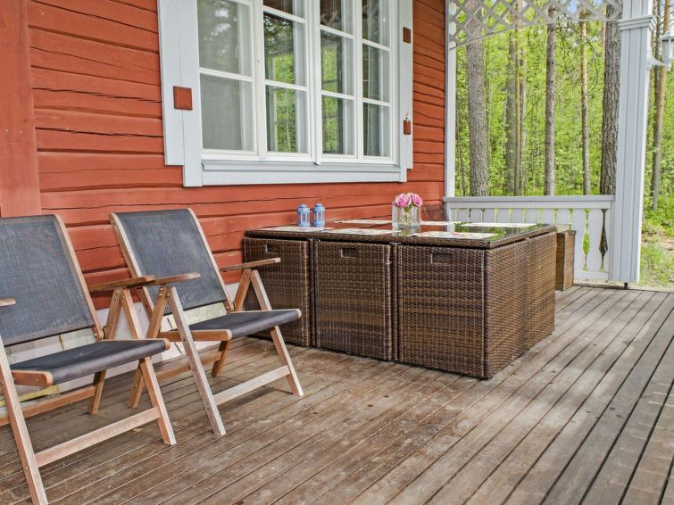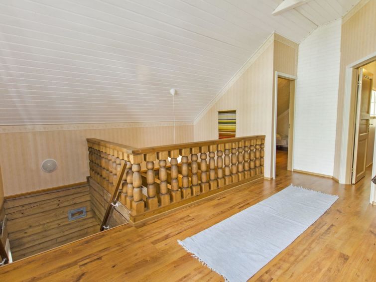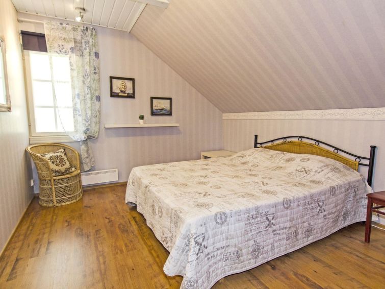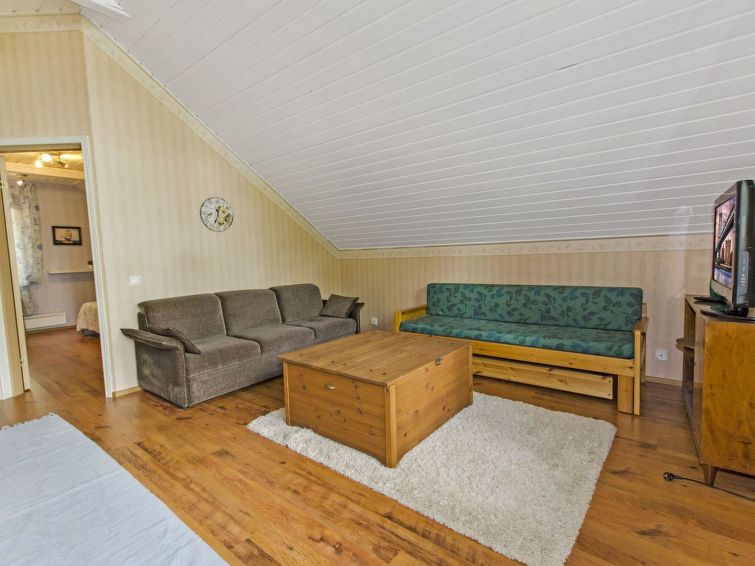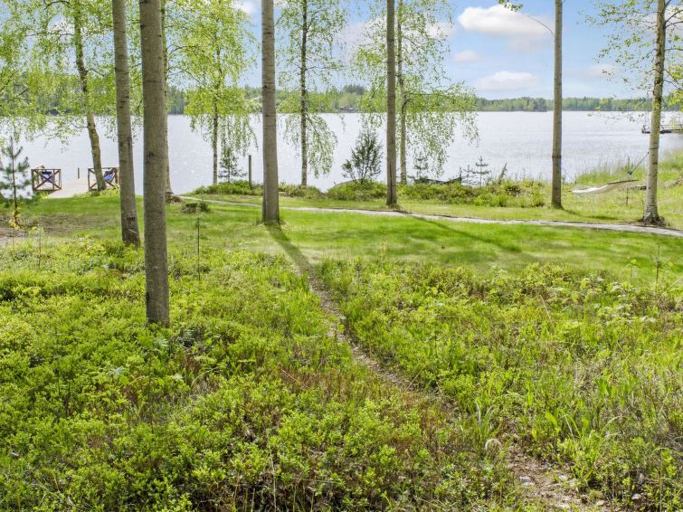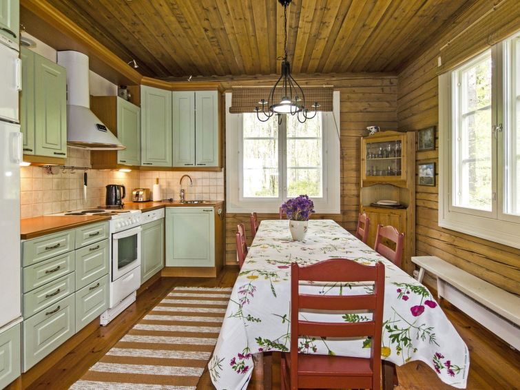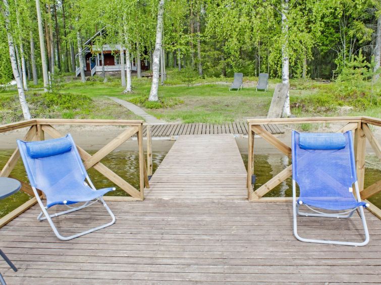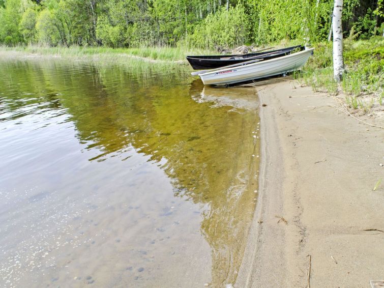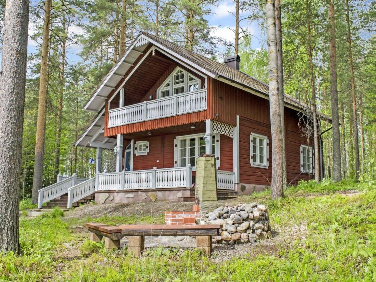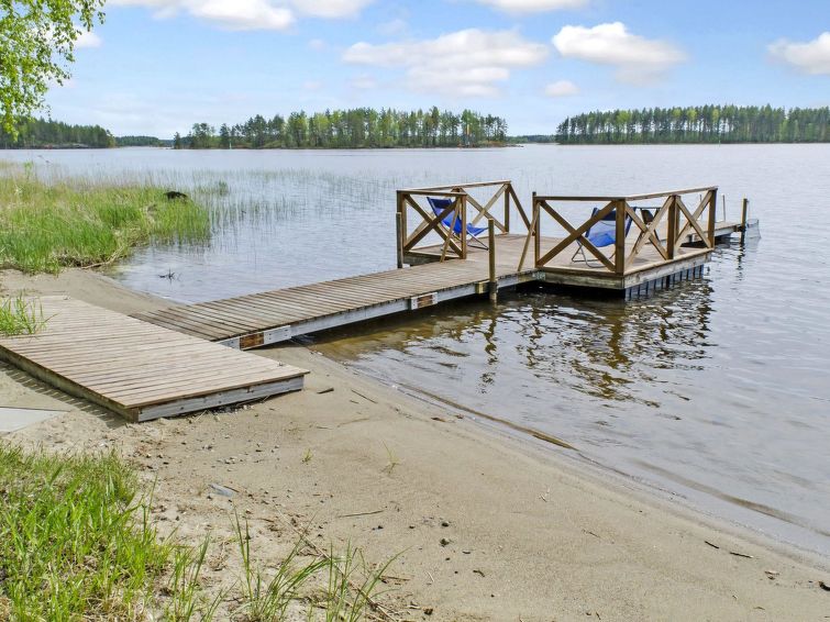 60 km south of Joensuu, Lake Orivesi 40 m (536 km2), shallow, sandy bottom, own shore 40 m , 2 boats and jetty. Log cottage 2003, living room- kitchen, bedroom with double bed. Upstairs bed room with double bed and bed room with 2 beds, sleeping gallery with sofa, washroom, sauna (elec. stove) and balcony. Baby cot at the cottage.