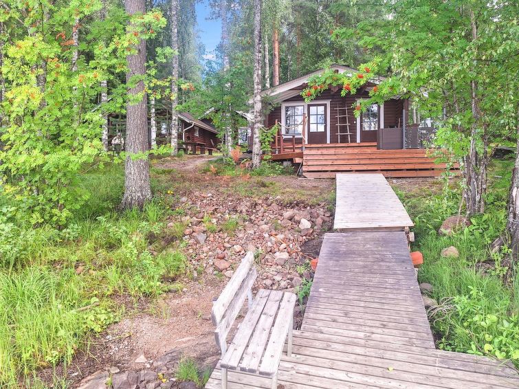 Lakeshore sauna (20 m²), wood-burning stove, washroom, shower (in summer), spacious fireplace room with 2 extra beds as an alternative bed (maximum number of people for the reservation, however, 9 people. Open porch. Grassed plot descending gently to shore, many birch trees, swimming shore has jetty. Homey holiday location for families and small groups.