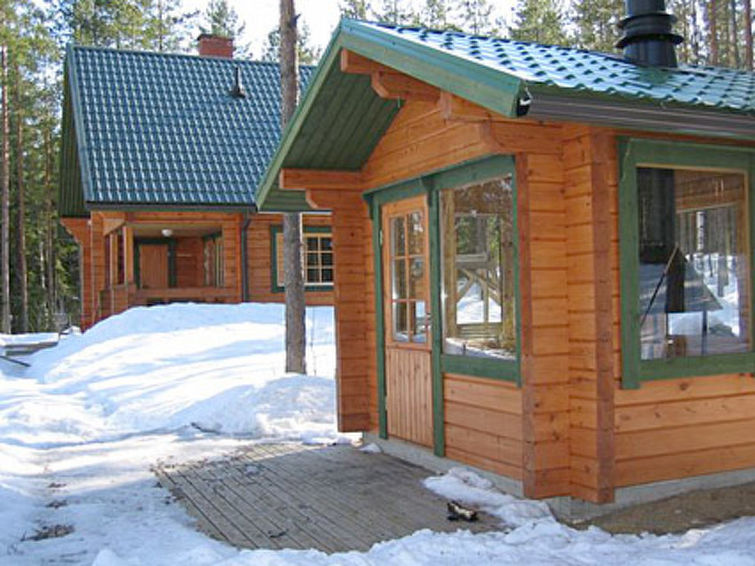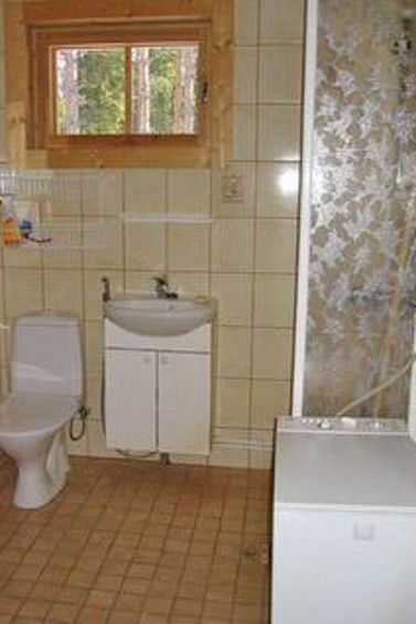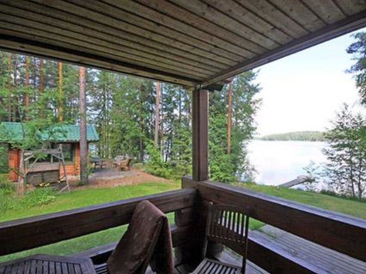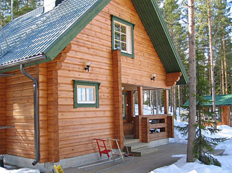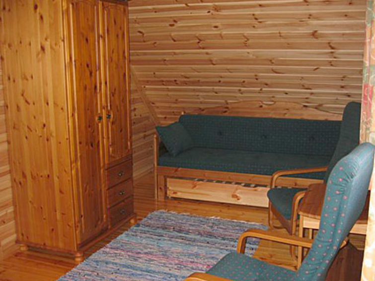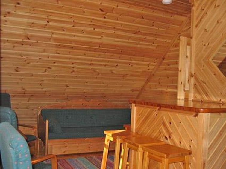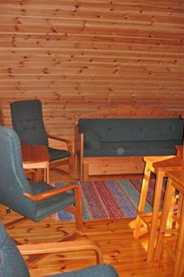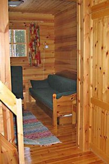 Log building 2001, downstairs with living room/kitchen, bedroom with 1 bed and convertible sofa, washing room, sauna, open veranda. Upstairs with 2 bedrooms, 2 beds and convertible sofa in both.