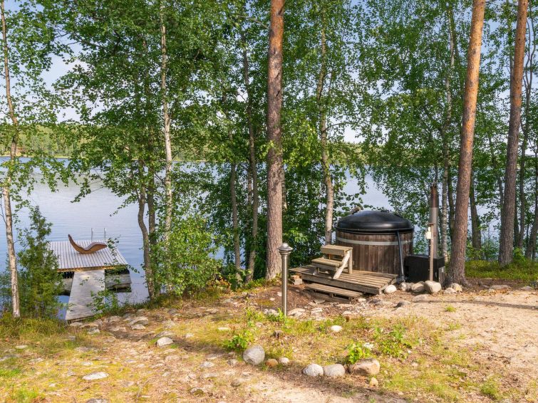 NOTE, THE HOT TUB IS BROKEN AND NOT AVAILABLE UNTIL ABOUT FEBRUARY 2024. Excellent view to Ruunavesi (Lake Saimaa). High standard log cottage identical to cottage no. 7588, these being neighbours (distance about 70 m). There is no other cottages near. Slope to shore.