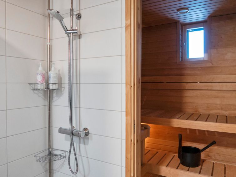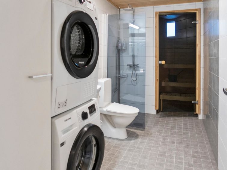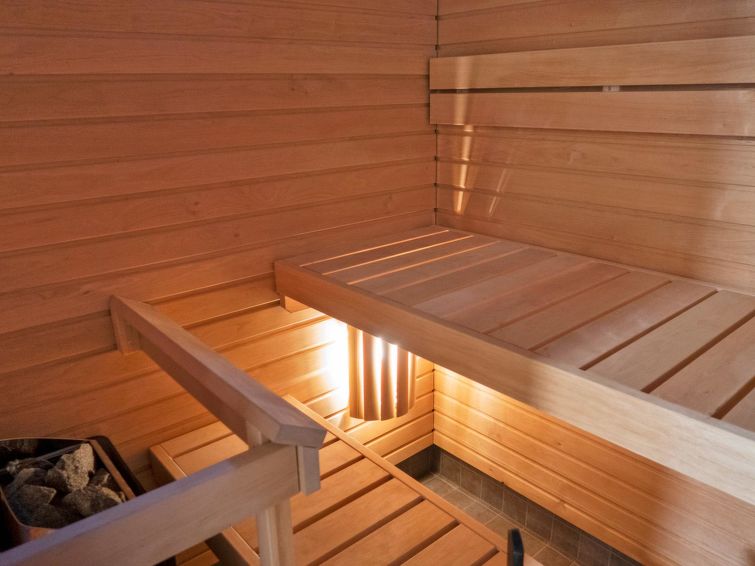 Sauna (electric sauna stove), washroom/WC. Balcony with furniture (coming for summer 2023). There is also warm ski maintenance room on the ground floor (for shared use) and warm cage storage for sports equipment.