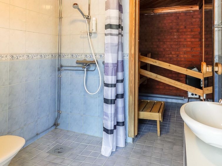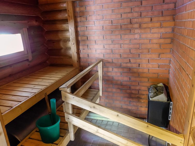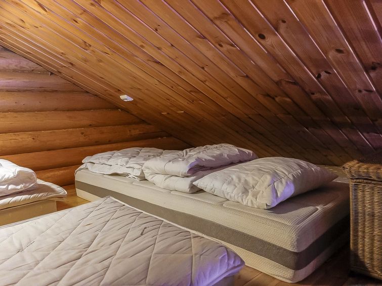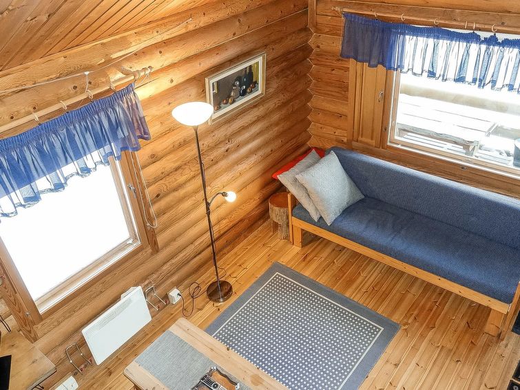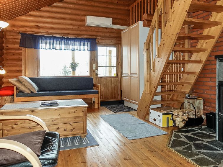 Log cottage 2003, kitchen area, living room with 2 convertible sofas, sleeping loft with 4 mattresses. Sauna (electric), open porch. Separate entry to sauna and toilet through the terrace.