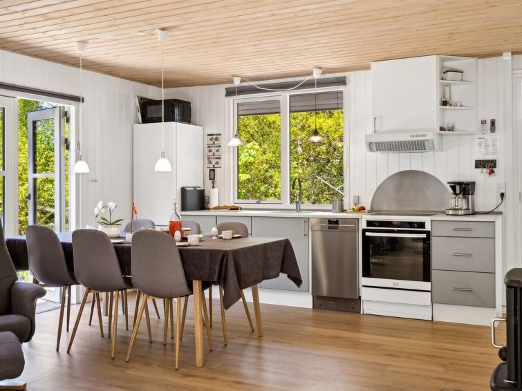 Enmannsbolig, bygget i 1995. 7 km fra sjøen. Privat: uberørt tomt 1'450 m2. Terrasse (155 m2), grill. I huset: vaskemaskin. Parkering ved hbrukt. Bilporten. Daglivarehandel 3 km. Eieren godtar ikke noen ungdomsgrupper.