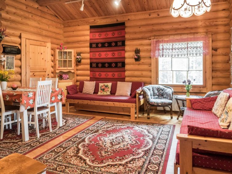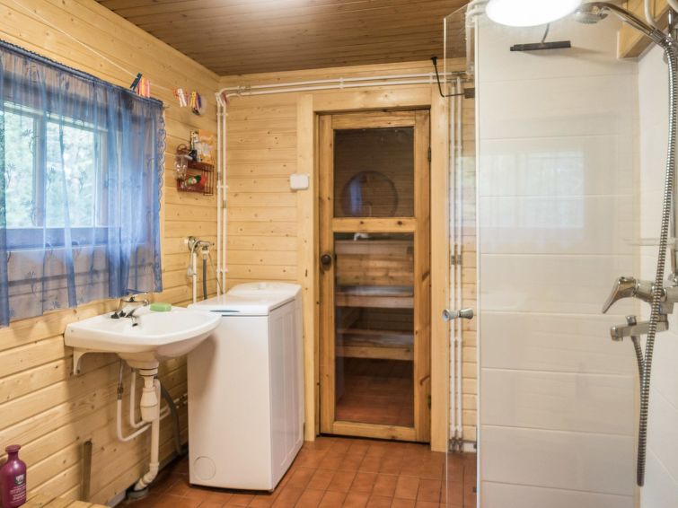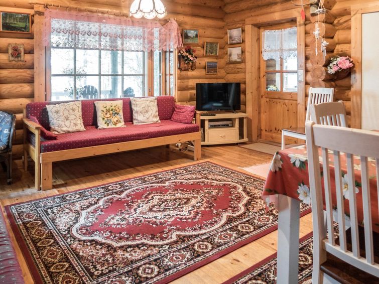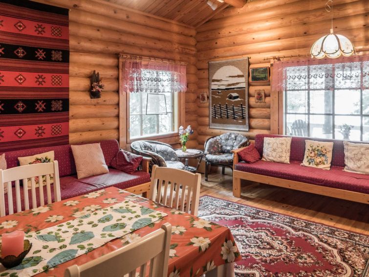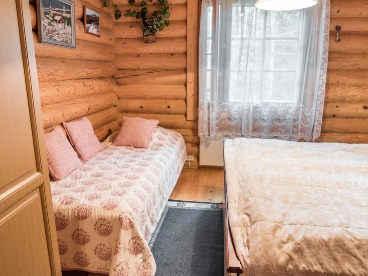 Huotarin mökki is built -76, renovated -16. Living area 70 m2, kitchen, living room with 2 sofa bed (max 4 persons), bed room with twin bed and one separate (80cm) bed. Toilet, washroom/shower, wooden heated sauna. Terrace.