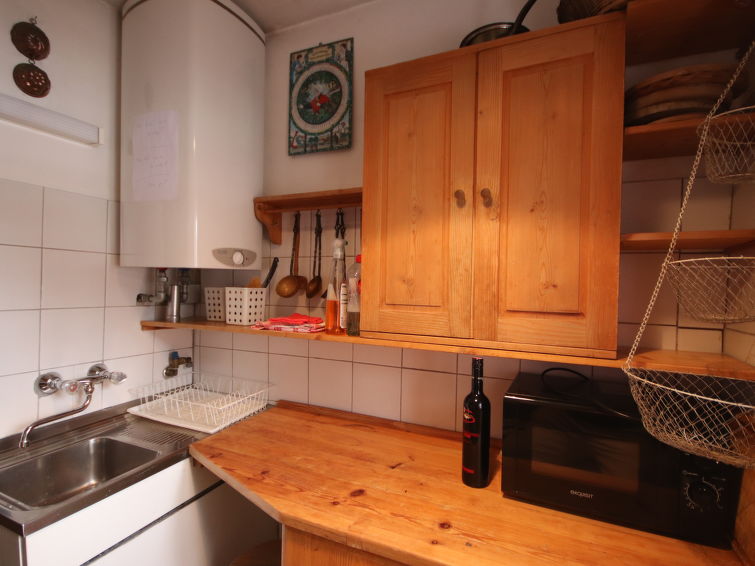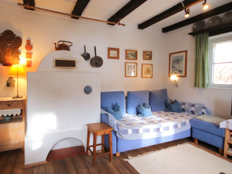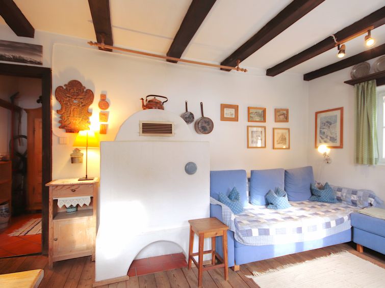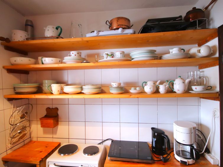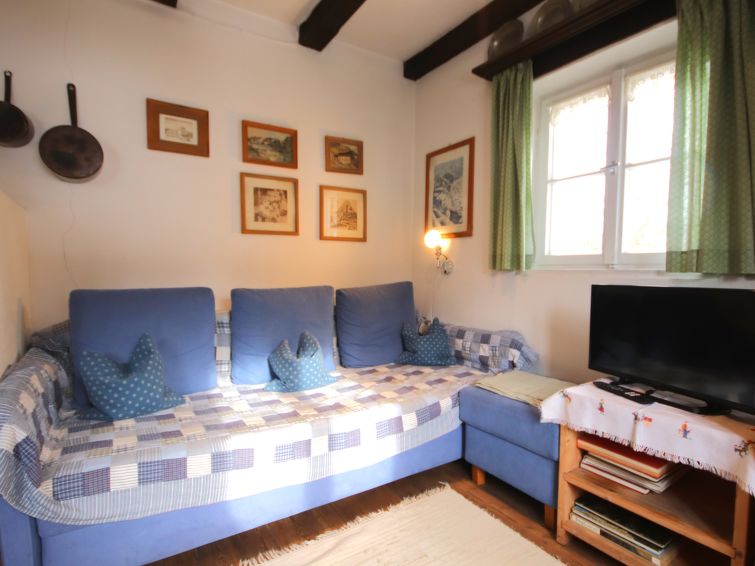"Hüttl (GSN100)", 2 rom hus 35 m2. Rustikt og koseligt møbler: stue/soverom med, 1 dobbel sovesoffa, spisebord, spisehjørne, satelit-TV, elektrisk oppvarming og kakkelovn. Lite kjøkken (2 kokeplater, miniovn, vannkoker, elektrisk kaffemaskin). Dusj, sep. WC. Varmekabler i gulvet. øverste etasje: (stige) sovealkove med skråtak, cm 100 cm med takvindu med, 4 sovemuligheter. Tregulv. Terrasse. Terrassemøbler. Vakker utsikt av fjellene og landskapet. Vennligst merk: ikke egnet for små barn. Røykfritt hus. I stedet for et separat soverom er de enkelte soveplassene plassert i et åpent område (hems, alkove osv.).