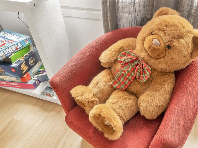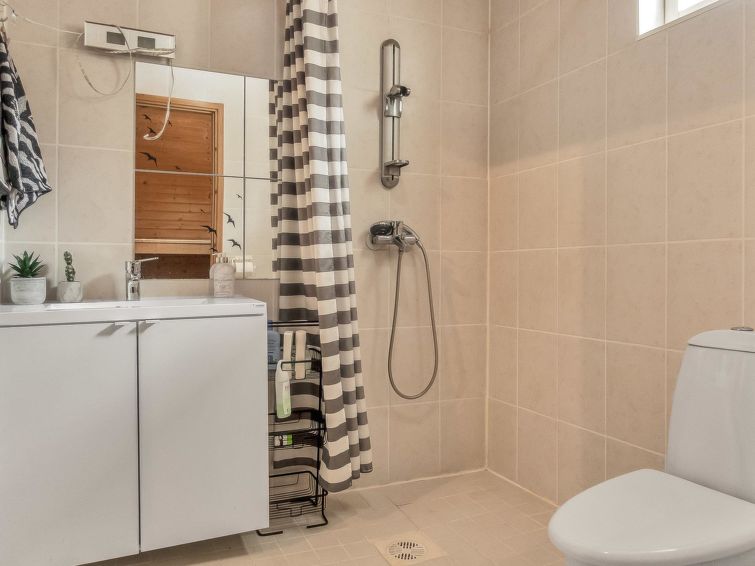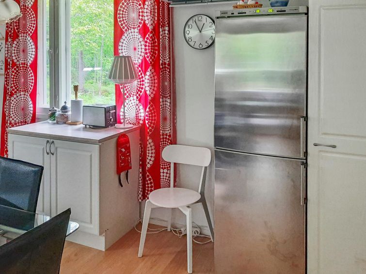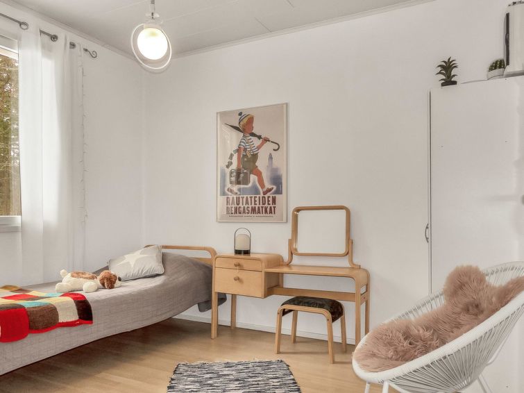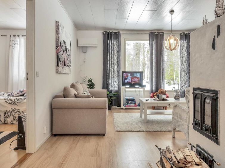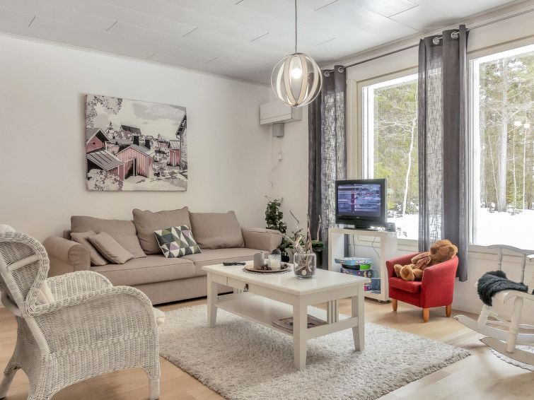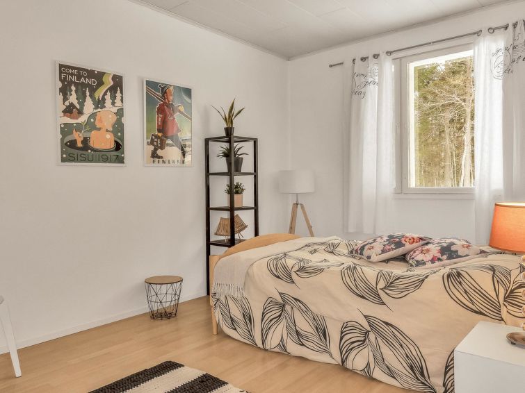 Wooden house, built in 2008. Living room / kitchen with sofa bed, bedroom with 120 cm wide bed, second bedroom with 1 bed and third bedroom (children's room) with 1 bed, sauna and washroom/WC.
