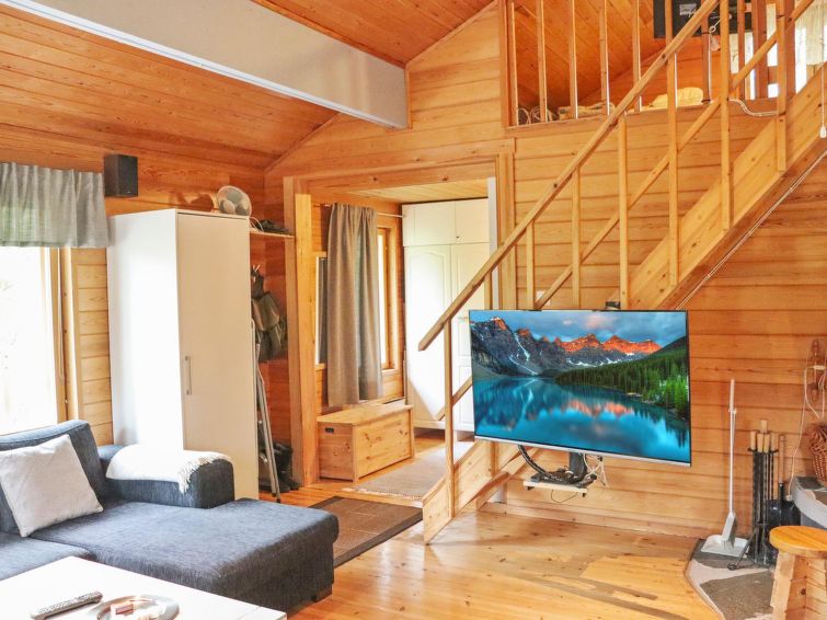 Interior renovated in summer 2022. Ukkohalla: Tourist center located on the shore of Lake Syväjärvi, with area information, shop, restaurant, spa, slope center, snowmobile trails, ski slopes, program services, beach in summer, frisbee golf course and wake board course. (more information www.ukkohalla.fi). Distance to Ukkohalla services 1.5 km. Airport Kajaani 86 km, Oulu 170 km, Helsinki 650 km, bus stop Hyrynsalmi 18 km and Kytömäki 10 km, railway station Kontiomäki 66 km. No pets allowed.