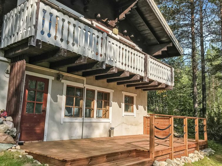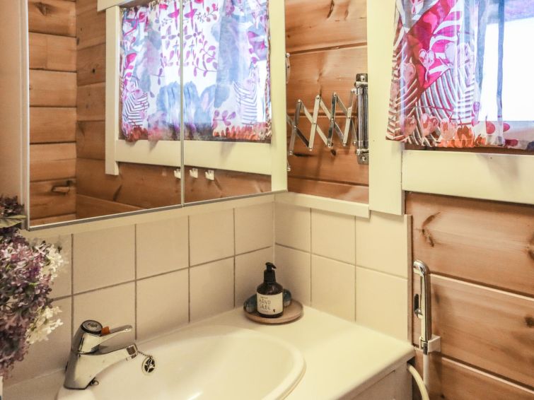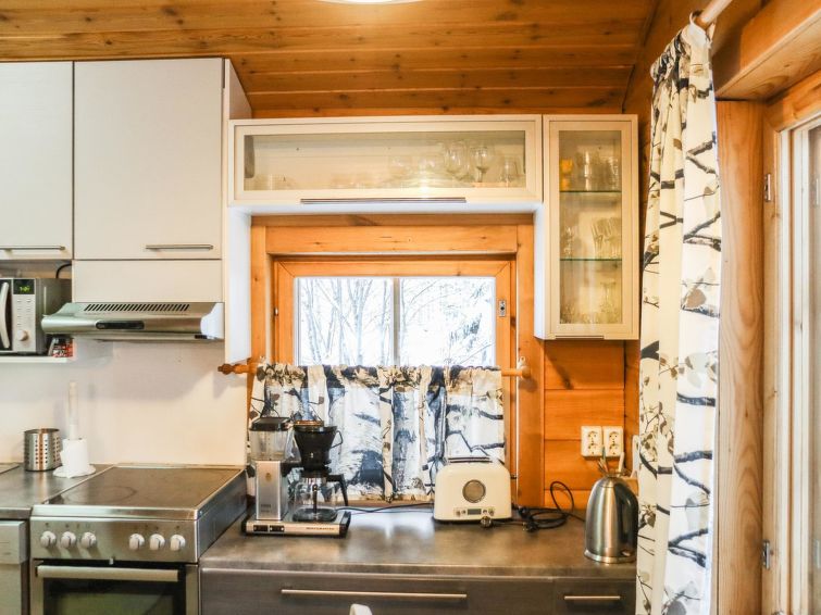 Ukkohalla: Tourism centre located by Lake Syväjärvi, with an information centre, store, restaurant, spa, slope centre, snowmobile tracks, ski tracks, programme services, beach (further information at www.ukkohalla.fi). Distance to the Ukkohalla services 1.0 km. Kajaani airport 86 km, Oulu 170 km, Helsinki 650 km, bus stop Hyrynsalmi 18 km, railway station Kontiomäki 66 km. Pets allowed. Cottage is available at 4.00pm on arriving day - till 12.00 on departure day.