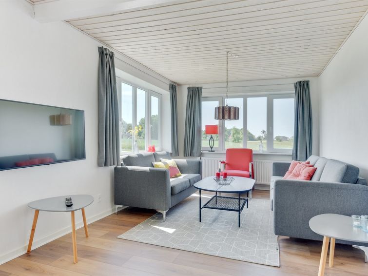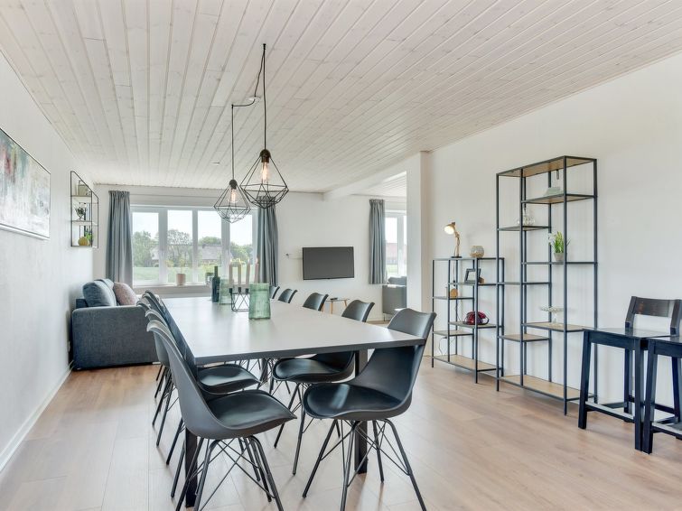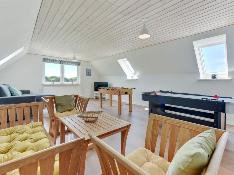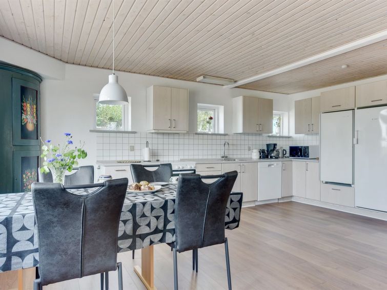 "Iina" in Western Jutland", 5 rom hus 144 m2. Passer for 10 voksne. Stue med, 1 dobbel sovesoffa og TV. 1 rom med, 1 dobbeltseng. 1 rom. Kjøkken (stekeovn, oppvaskmaskin, 4 keramiske kokeplater, mikrobølgeovn, frys). 2 dusjer/WC. øverste etasje: 1 rom med, 1 dobbeltseng. 1 rom med, 1 dobbeltseng. 1 rom med, 1 dobbel sovesoffa. Utsikt av havet. Fasiliteter: høy barnestol. Internett (trådløs LAN [WLAN]). Vennligst merk: røykfri bolig. Max kjæledyr / hund tillatt 1 kjæledyr / hund tillatt.