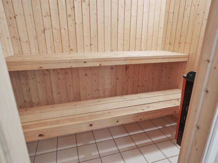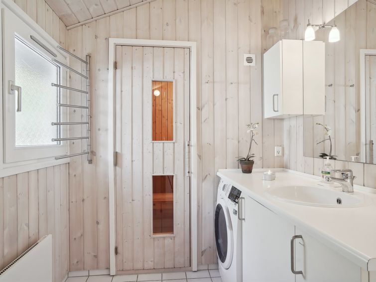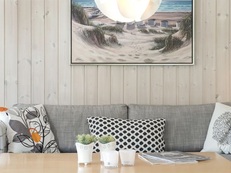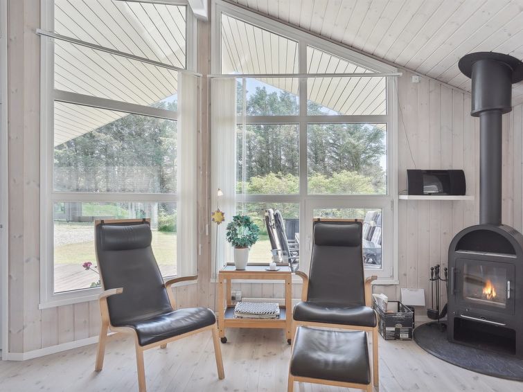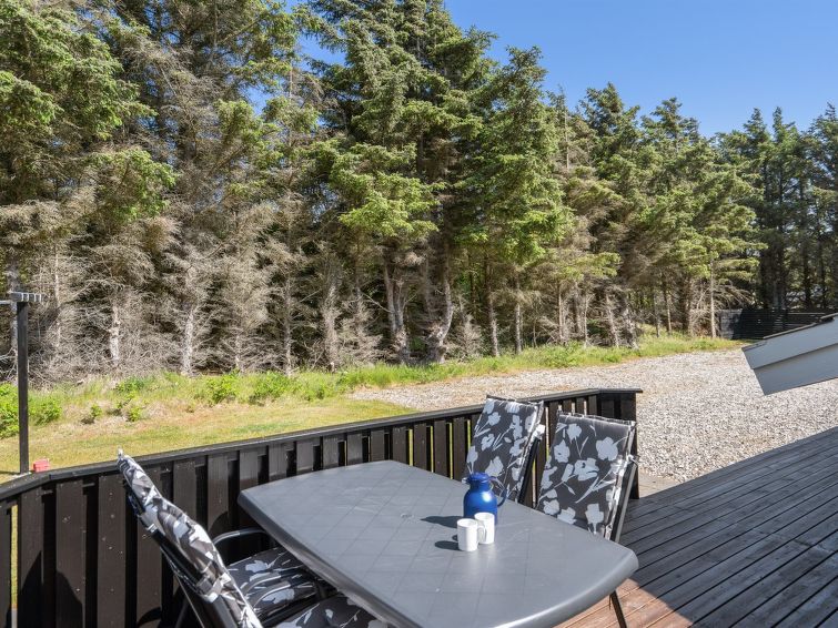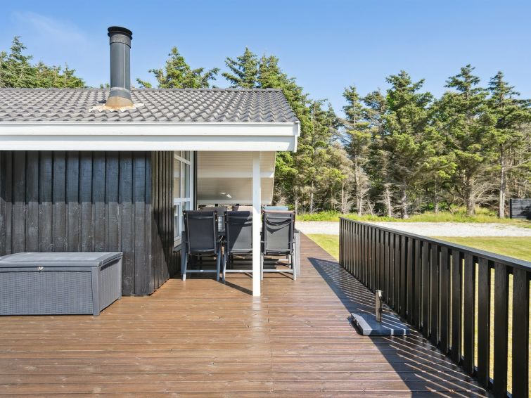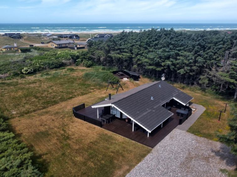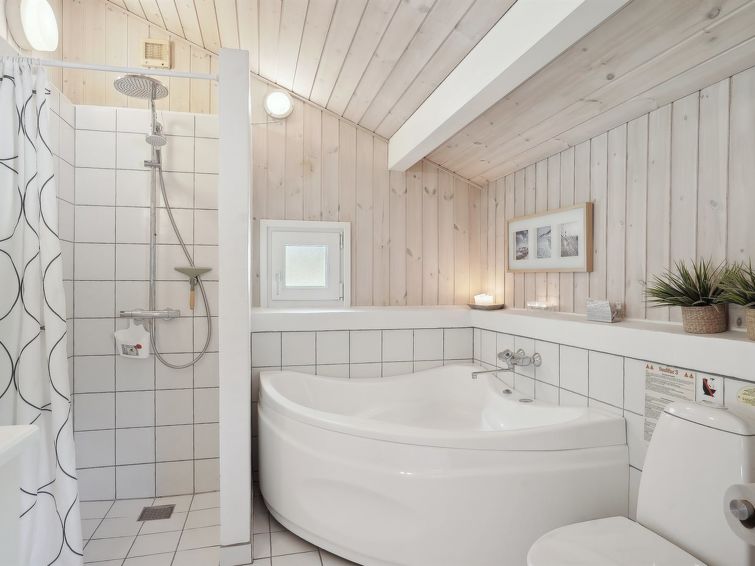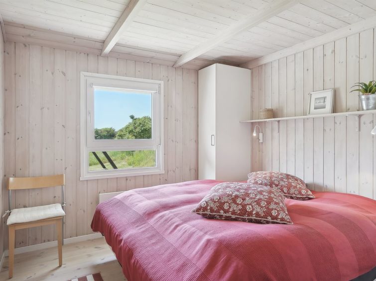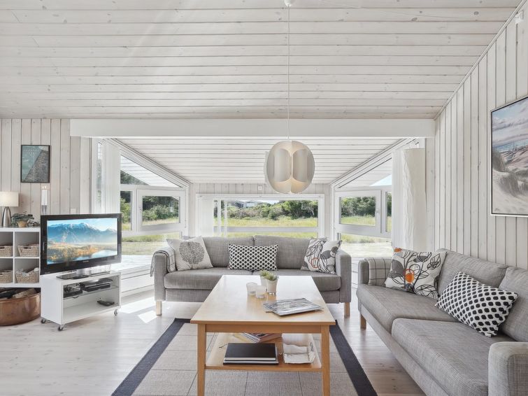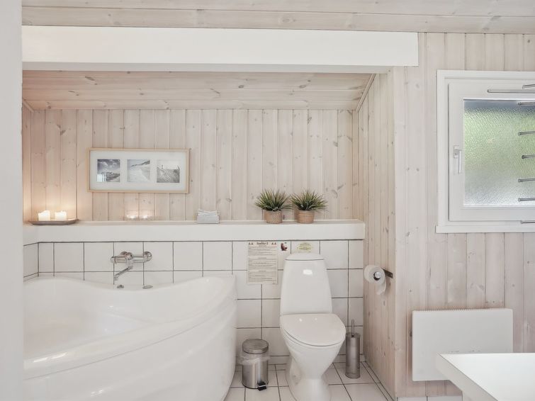 "Ilka" - 375m from the sea in NW Jutland", 3 rom hus 93 m2. Passer for 6 voksne + 1 barn. Stue med, TV, radio, CD-spiller og DVD. 1 rom med, 1 dobbeltseng. 1 rom med, 1 dobbeltseng. 1 rom med, 1 dobbeltseng. Kjøkken (stekeovn, oppvaskmaskin, 4 keramiske kokeplater, mikrobølgeovn, frys). 2 dusjer/WC, boblebad. Terrasse 27 m2, dekt. Utsikt av havet. Fasiliteter: høy barnestol barneseng (ekstra). Internett (trådløs LAN [WLAN]). Vennligst merk: røykfri bolig.