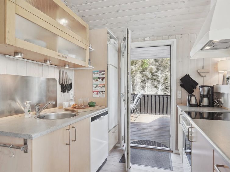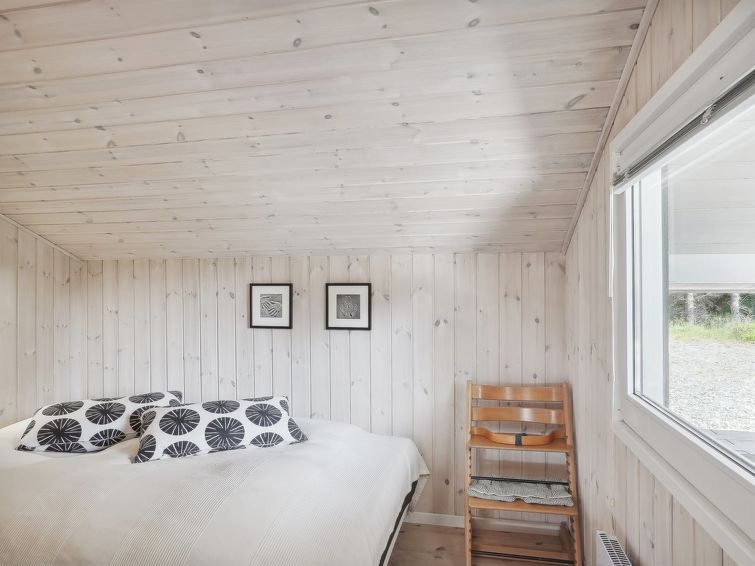 Enmannsbolig, bygget i 2000. 375 m fra sjøen. Privat: uberørt tomt 2'500 m2. Utendørs dusj, terrasse (100 m2), lekeplass (huske). I huset: badstu, vaskemaskin, tørketrommel. Parkering ved hbrukt. Daglivarehandel 1.2 km. Eieren godtar ikke noen ungdomsgrupper.