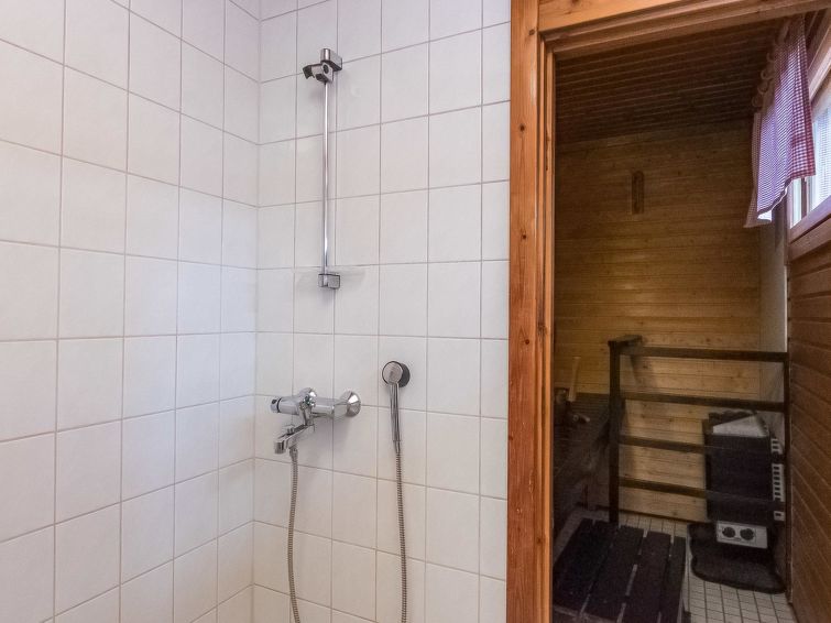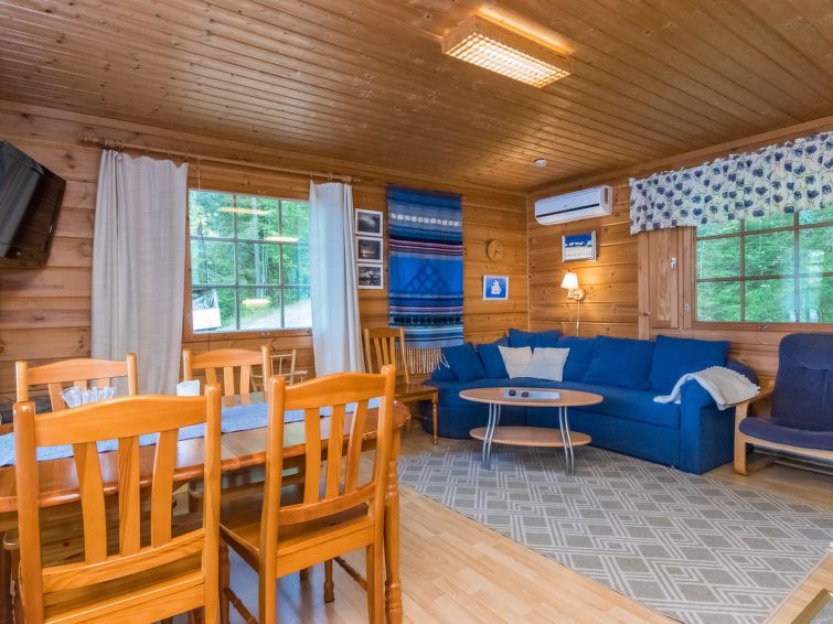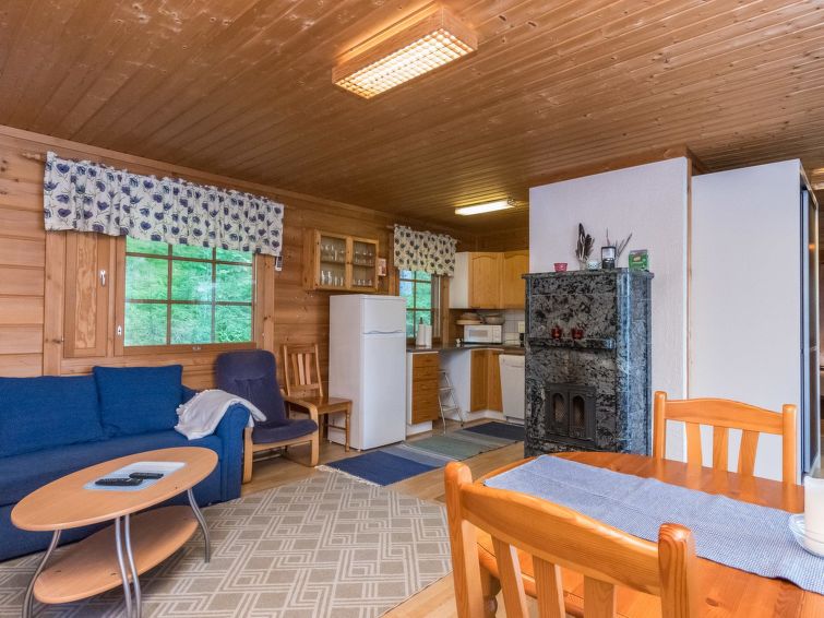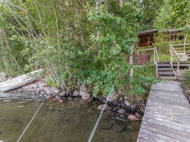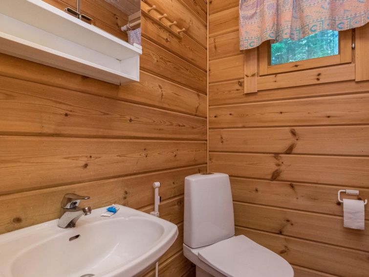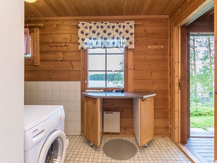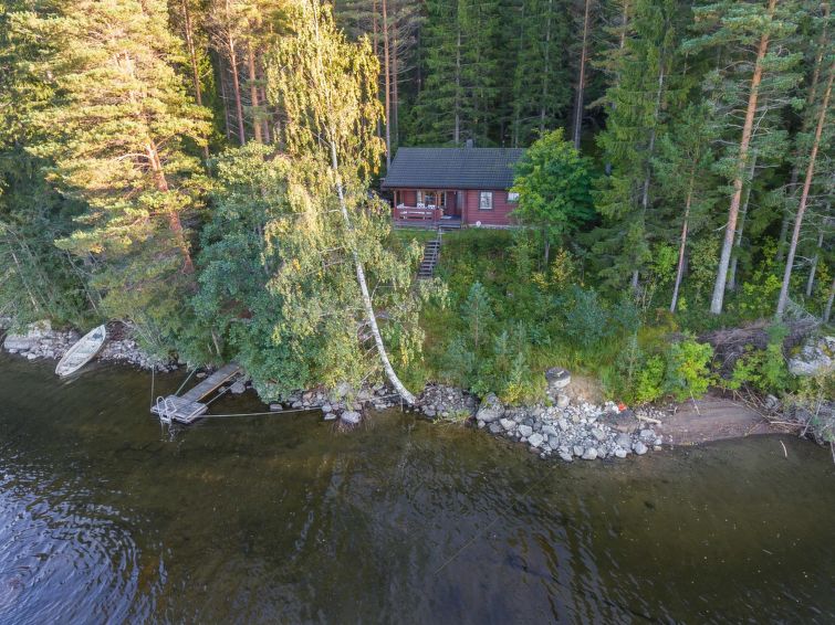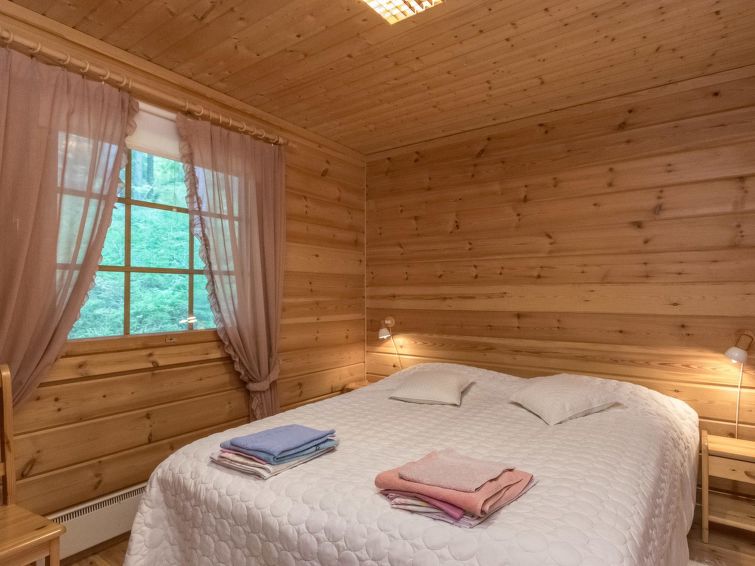 56 km south of Savonlinna. Lake Saimaa/Pihlajavesi 25 m, shallow water, firm sandy bottom. Own boat. Log cabin 1995, living room/kitchen with sofa bed, 2 bedrooms with 2 beds in each, washroom, dressing room, sauna (elec. stove), open veranda. Lakeside sauna 10 sqm (heated by wood). The owner rents outboard motors: 3 engines among 14 cottages, please check the availability in advance. Bicycles for rent.
