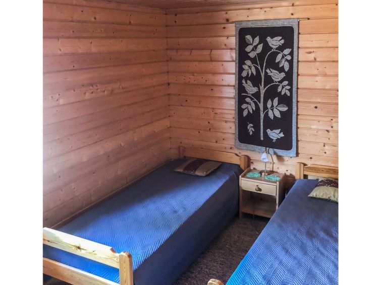 Log cabin 1982, renovated 1999, living room/kitchen with 2 extra beds, 2 bedroom with 2 beds in each, foyer, open veranda. Shower in the cabin.