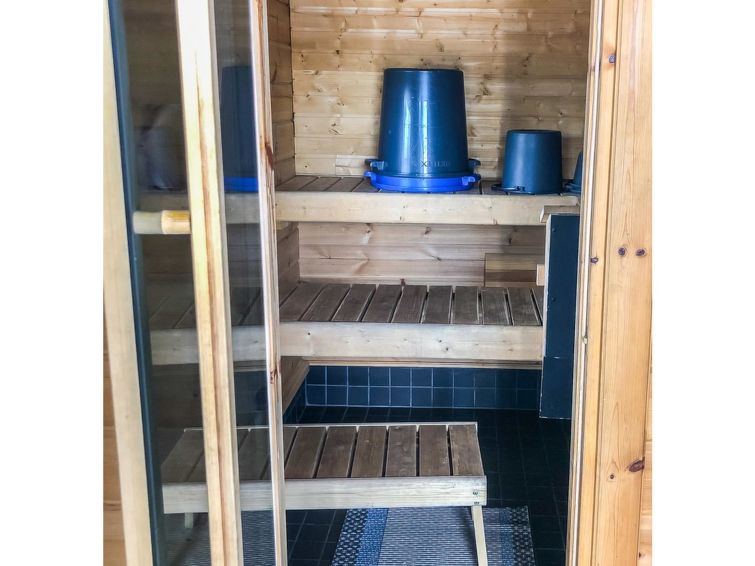 Wood-heated lakeside sauna with dressing room, built in 2017, distance from the cottage 10 m. In sauna electric light, underfloor heating, water must be carried from the lake and warmed in sauna stove. A movable hot tub for rent by pre-booking. Price is 80-120 e/heating.