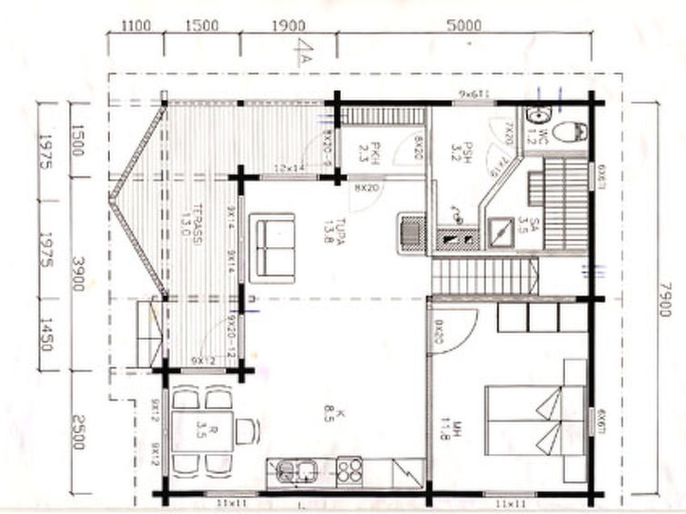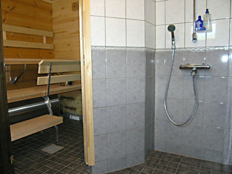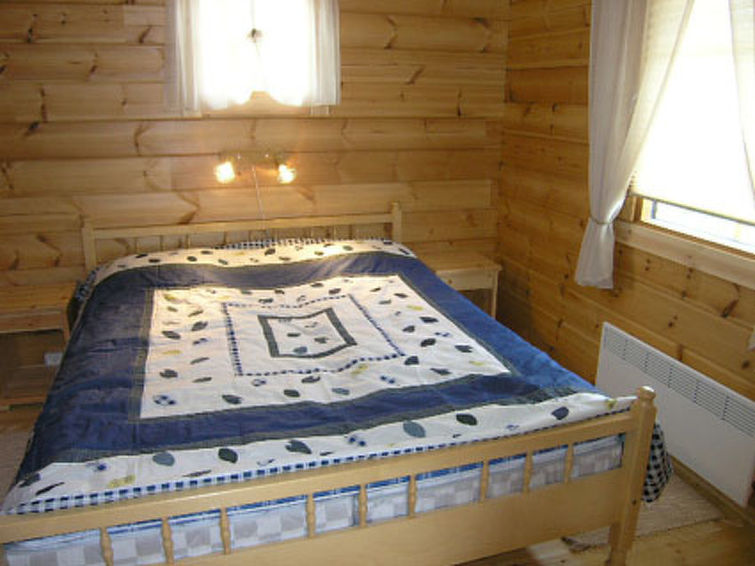 Log cabin 2007, living room/kitchen convertible sofa for 2, bedroom with double bed, sleeping loft with 2 extra beds, washing room, sauna, dressing room, toilet, open veranda. Campfire site and grill hut on the yard.