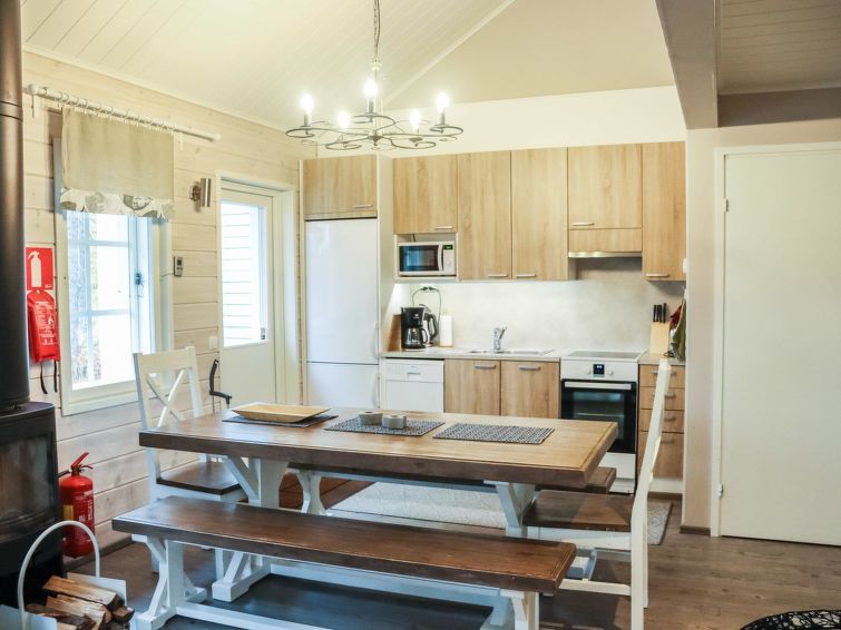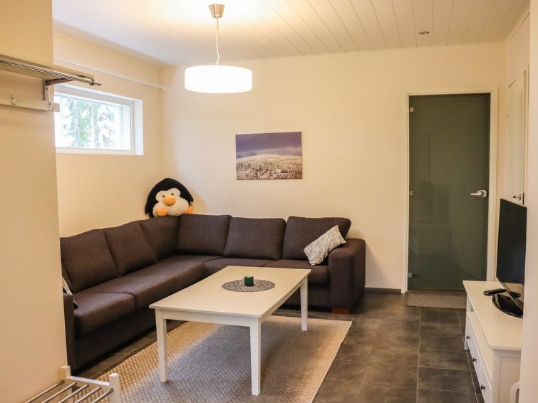 Pets allowed for an additional fee, but only downstairs. Ukkohalla: Tourism centre located by Lake Syväjärvi, with an information centre, store, restaurant, spa, slope centre, snowmobile tracks, ski tracks, programme services, Cable Wakeboard, beach (further information at www.ukkohalla.fi). Distance to the Ukkohalla services 0.1 km. Kajaani airport 86 km, Oulu 170 km, Helsinki 650 km, bus stop Hyrynsalmi 18 km, railway station Kontiomäki 66 km.
