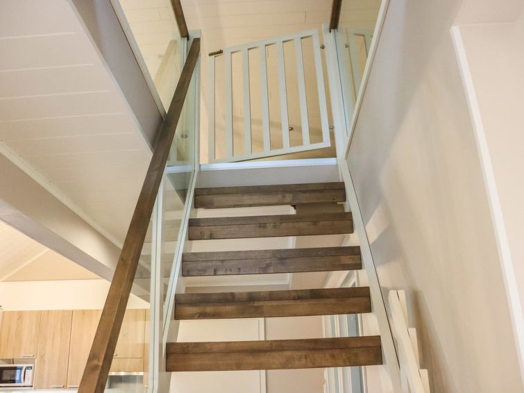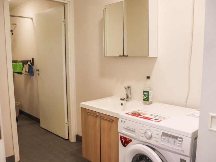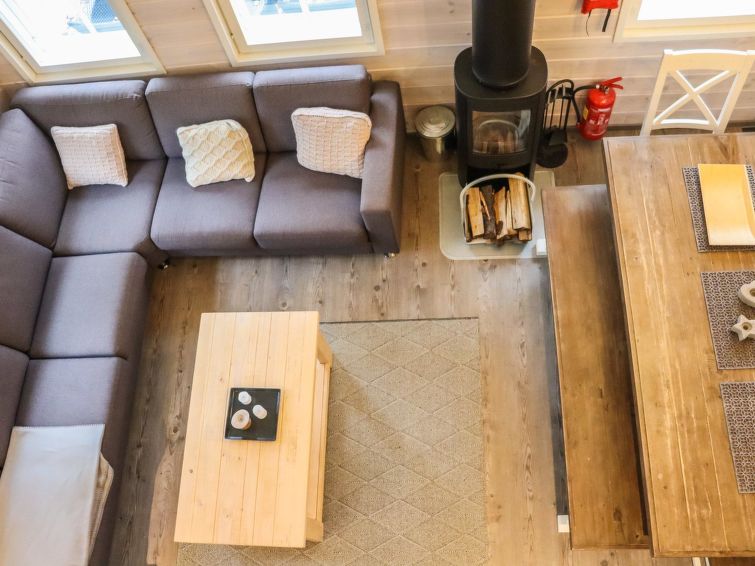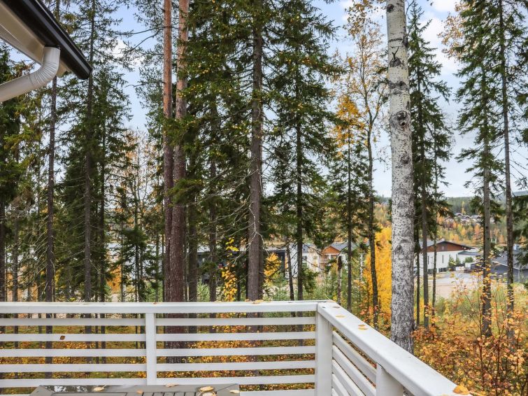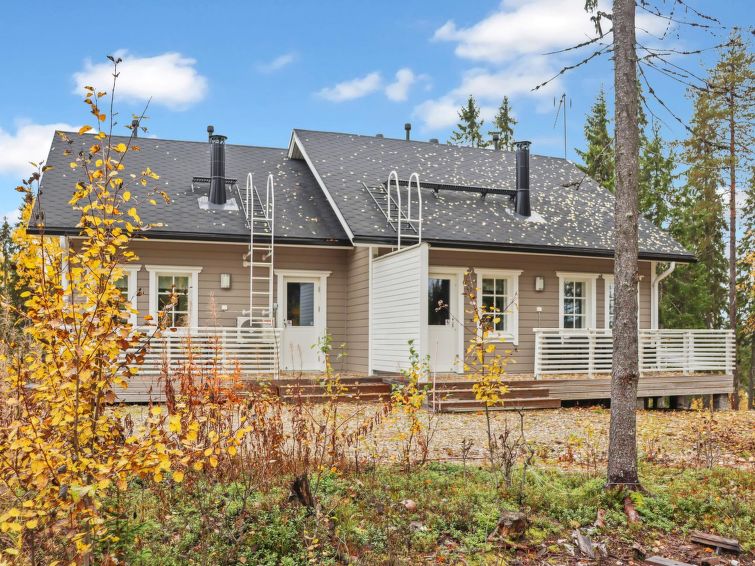 A semi-detached house located in the Ukkohalla tourism centre, 95 m²+loft 28m², for 8 persons, built in 2015. Entrance from downstairs of cottage, where are living room and sauna. In the middle layer are kitchen-living room and 2 bedrooms. 2 wc, one of which on downstairs and second on the middle layer. Cottage has drying room. Waxing room ans storage for 2 cottages. View to the lake and slopes. Beds: in one bedrooms double bed, in second bedroom 2 beds, on loft 4 beds.