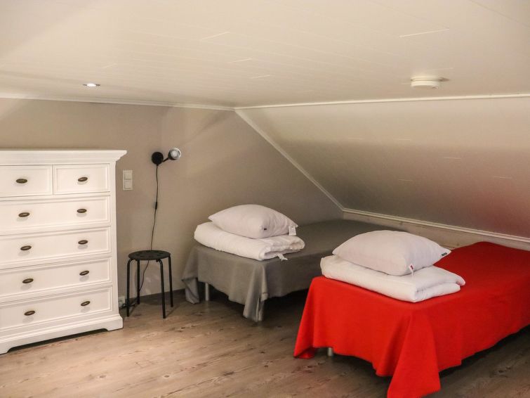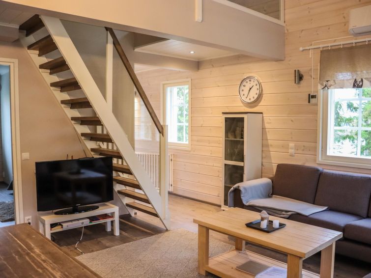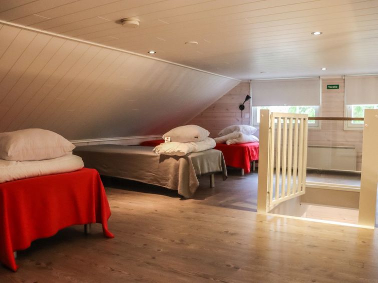 Kitchen, 3 bedrooms (one on the loft), loft lobby, sauna, shower room, 2 separate toilets, dressing room, vestibule, terrace, storage, fireplace and firewood. 2 bedrooms with 2 x 80 cm beds/room, a double bed in one of the bedrooms, a sofa-bed+ 2 spare mattresses on the loft. WLAN. Firewood includes in price.