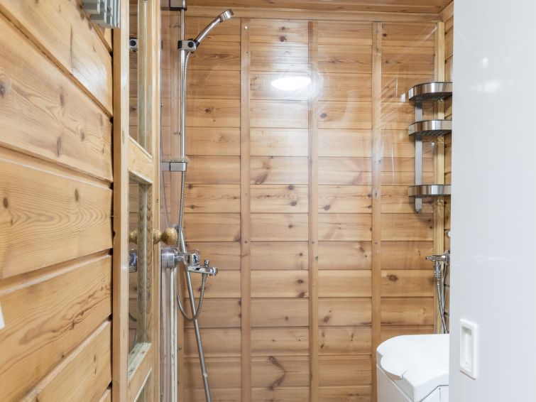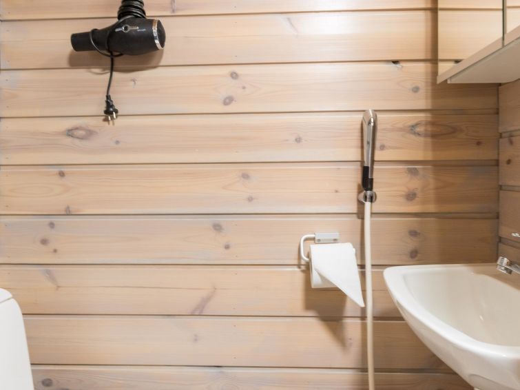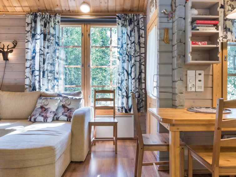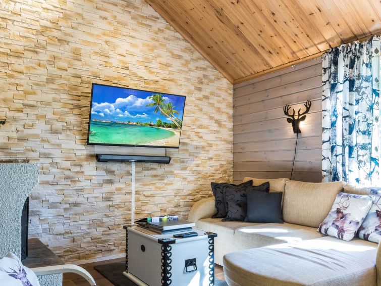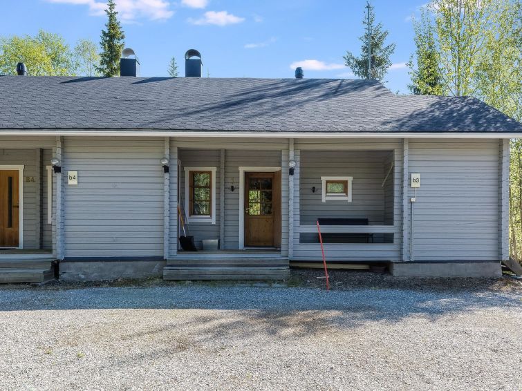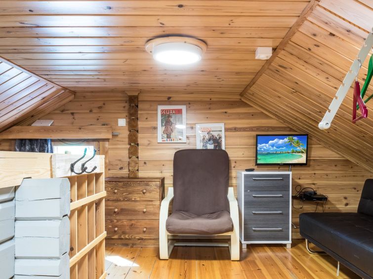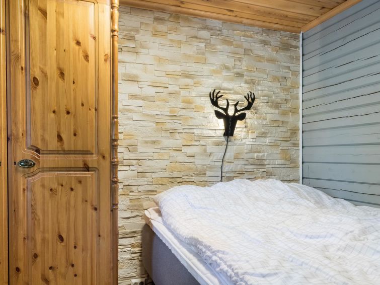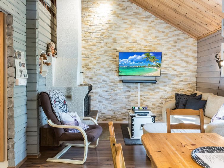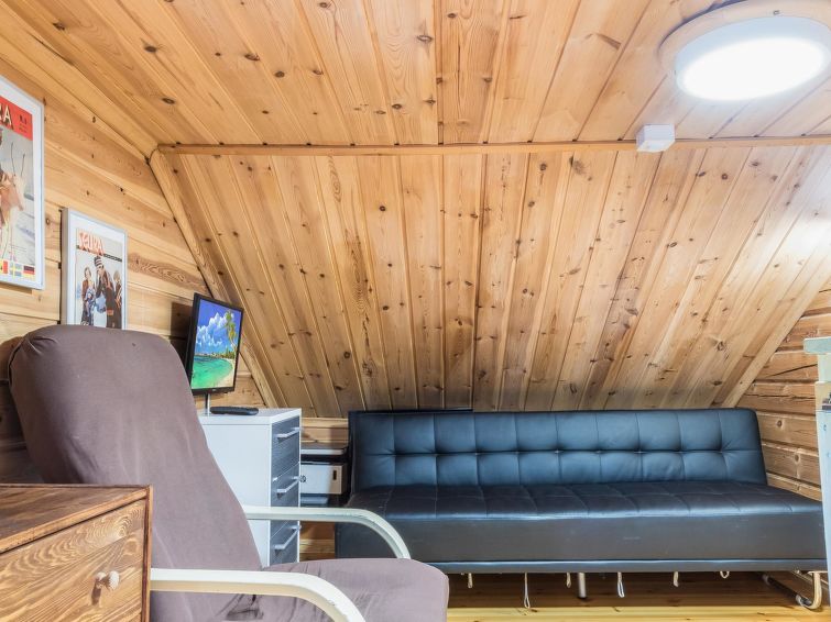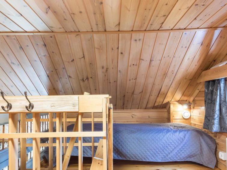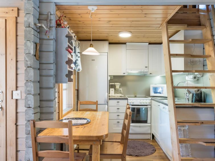 40km Northeast of Kolari, lake Ylläsjärvi 1km, swimming beach 2,5 km. Log-built semi-detached apartment 1990. Combined livingroom-kitchen, bedroom with doublebed, loft (21 m²) with 3 beds, electric sauna, shower, separate toilet. Ski maintenance room with neighbor apartment in shared use, located beside this apartment. Cosy holiday apartment in Ylläsjärvi village, in Rämeänniemi area. Apartment is located in peaceful area, near by crosscountry ski track and snowmobile route. WLAN.
