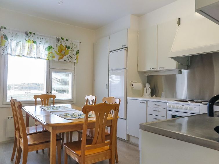 24 km to the north from Kemi, river Kemijoki 80 m (the width of the river is 500 m, reservoir) deep, rocky beach, pier and boat for shared use with neighboring apartment.