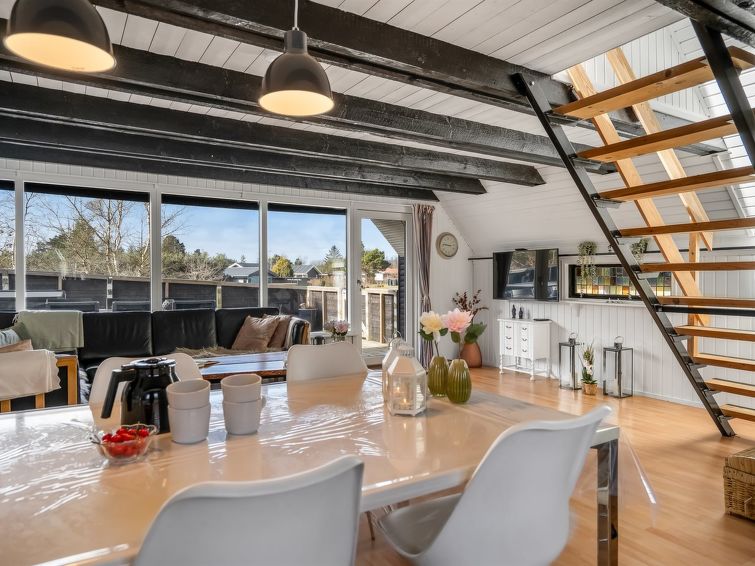 "Jace" - 900m from the sea in NE Jutland", 3 rom hus 85 m2. Passer for 6 voksne. Stue med, åpen peis, TV og radio. 1 rom med, 1 dobbeltseng. 1 rom med 2 senger. 1 rom med 2 senger. Kjøkken (stekeovn, oppvaskmaskin, 4 keramiske kokeplater, mikrobølgeovn, frys). Dusj/WC. Fasiliteter: Internett (trådløs LAN [WLAN]). Vennligst merk: røykfri bolig. Max kjæledyr/små hunder tillatt 3 kjæledyr/små hunder tillatt.