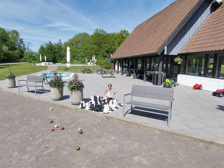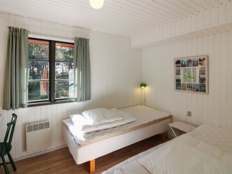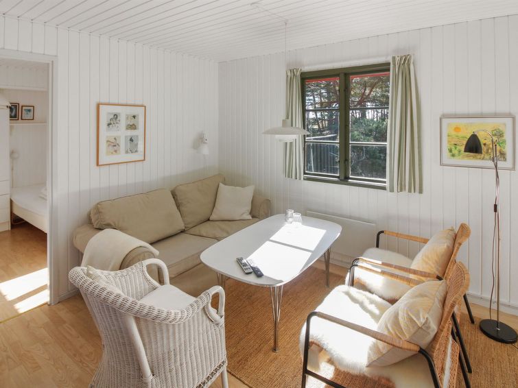 Ferielandsby, bygget i 1973. 50 m fra sjøen. Privat: uberørt tomt. Terrasse (15 m2), lekeplass (huske). Daglivarehandel 3 km.
