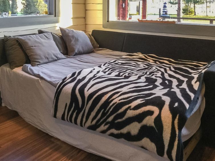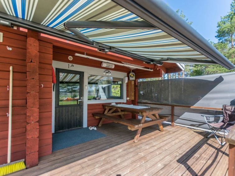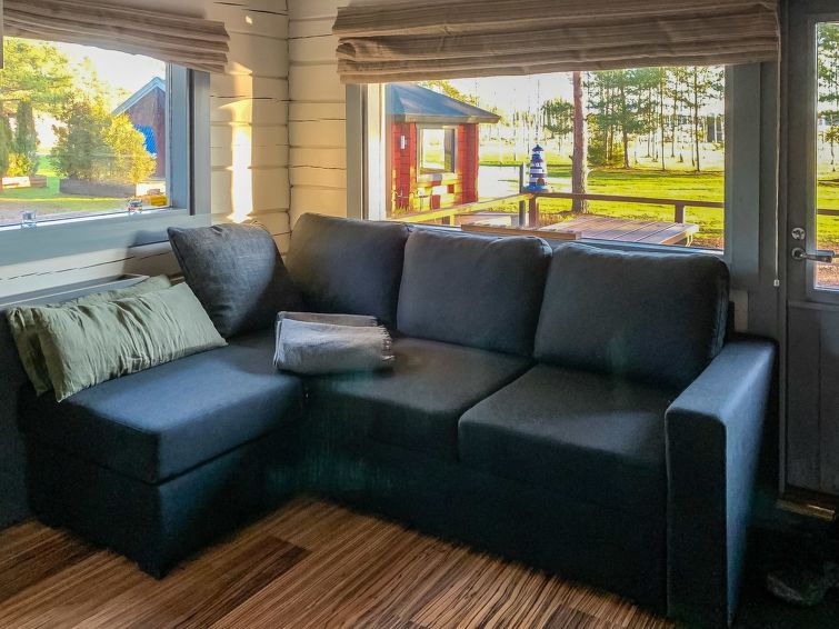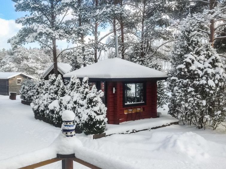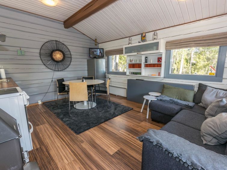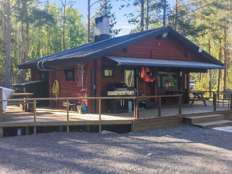 Log cottage 1996, living room sofa bed, kitchen, 1 sleeping area with double bed (160 cm), wood-heated sauna, shower, toilet. Terrace in front of the cottage, gas grill. Air source heat pump (also cooling feature).