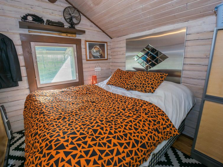Separate backyard cottage (12 m²) with 160 cm wide double bed, fridge.