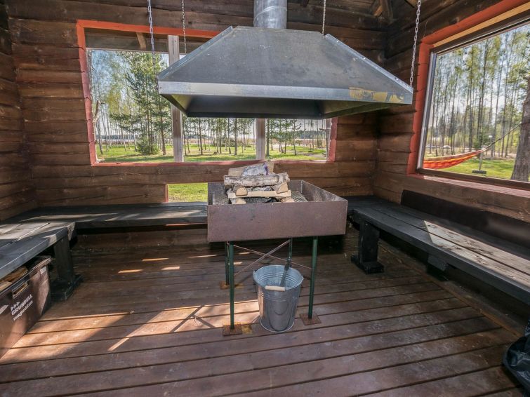 Available griddle pan and Muurikka electric smoker, 2 dart boards, 2 Frisbee golf baskets, Mölkky, football croquet, 2 sets of croquet and betanque games and badminton equipment for four.