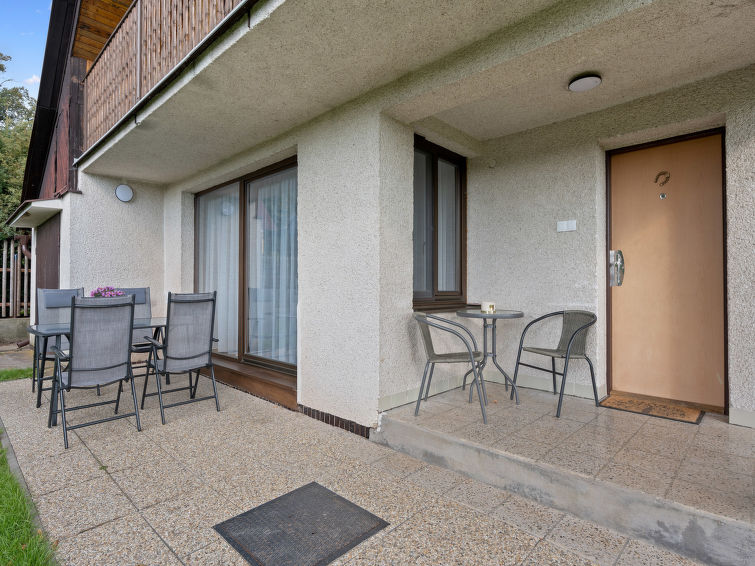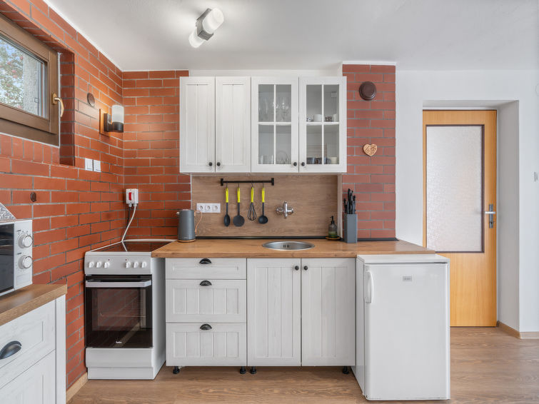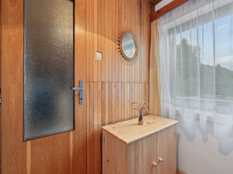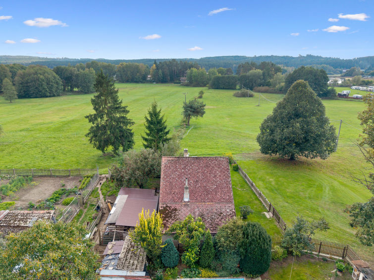 Familievennlig, koselig hytte "Jaruška", med 2 etasjer, frittstående, omgitt av enger. I området Zakopaná, 2 km fra sentrum av Branžež, i en roligt, solrikt posisjon, 200 m fra skogskanten, 400 m fra innsjø, i det grønne. Privat: tomt 270 m2 (inngjerdet). Hagemøbler, grill, grillplass. I huset: sykkelrom. Parkering (for 5 biler) ved hbrukt. Butikk 5 km, kjøpesenter 10 km, restaurant 400 m, bussholdeplass "Zakopaná" 30 m, togstasjon "Březina" 6.5 km, utendørs svømmebasseng 5 km, offentlig badeområde 400 m. Attraksjoner i nærheten: Drábské světničky 4 km, Hrad Kost 5 km, Valečov, Zámek Humprecht 10 km, Hrad Trosky, Valdštejn, Zámek Sychrov H 20 km, Hrubá Skála, Skalní město 20 km, Prachovské skály 20 km, Malá Skála - Pantheon 25 km. Velkjente innsjøer: Komárovský rybník 400 m.