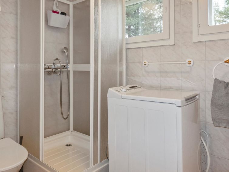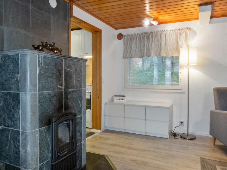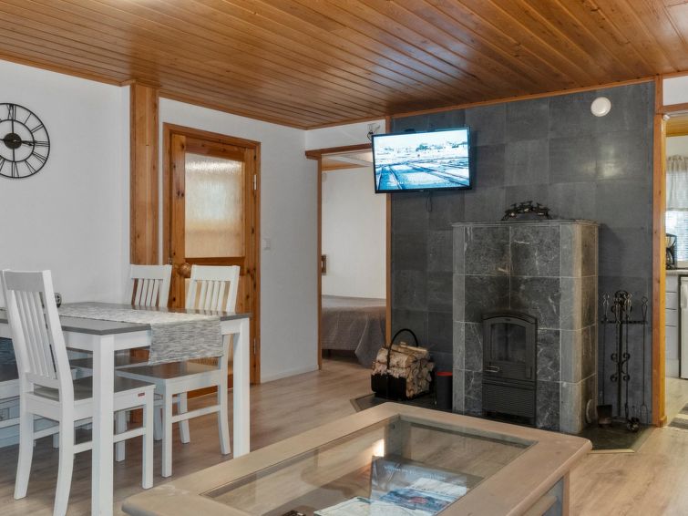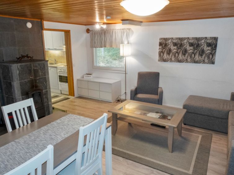 Log cottage, built in 1983, expanded and renovated in 2002. Living room with convertible sofa bed, kitchen, bedroom with narrow double bed (width 140 cm), shower room and toilet, hall, open porch.