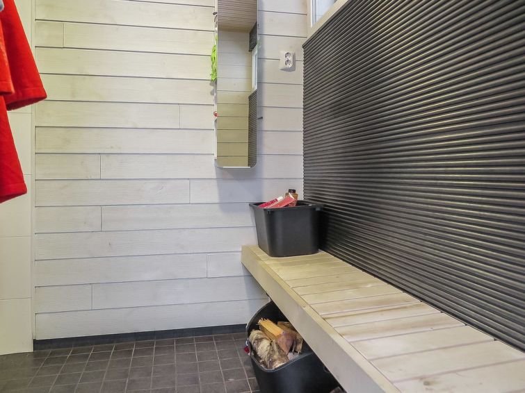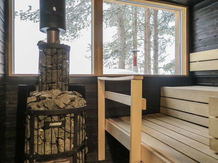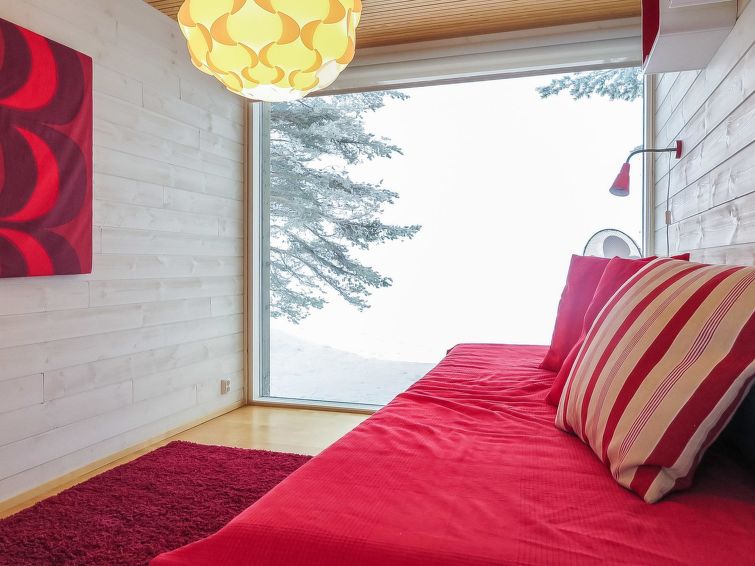 Lakeside building (22 m²) with sauna, washroom (shower), dressing room, guest bedroom with foldable bed for two and terrace. There is no toilet in the sauna building.