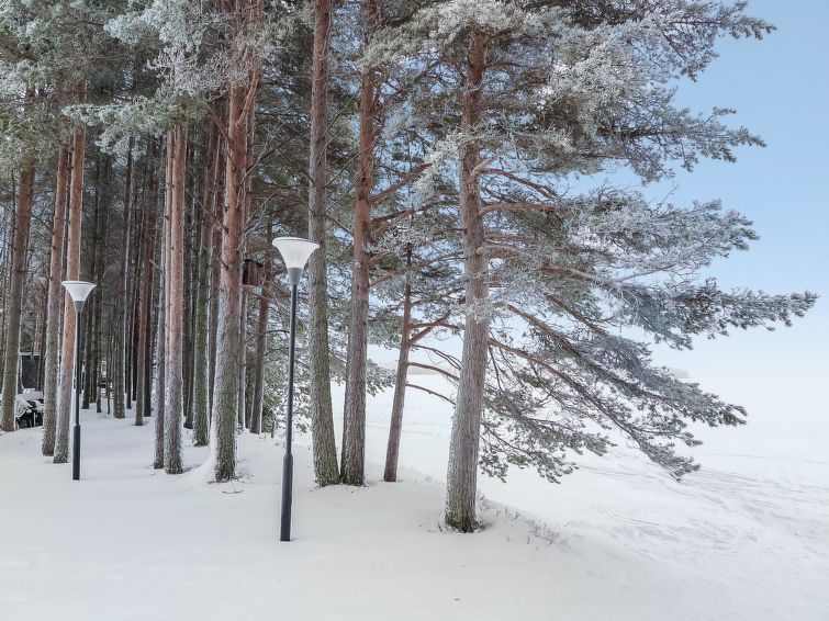 60 km northwest of Kajaani, lake Oulujärvi 20 m, shallow beach, sand bottom, suitable for children, 2 rowing boats.