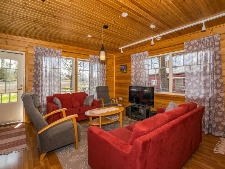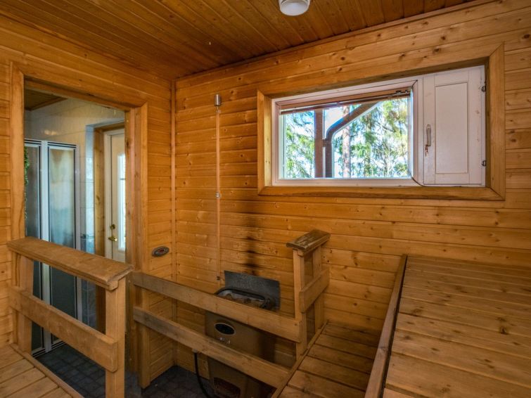 You can rent hot tub from the owner, price 150€ / 1-2 days. Owner fills the hot tub, warming and emptying of the hot tub by the client. The hot tub's warming up can be suit also on advance with serviceman for extra cost Please, check availability of hot tub in advance (it is rented for two cottages). Heat-treated log cottage with all conveniences. Level yard area, slope to shore. Swimming beach is sanded and suitable for children. For example pike perch, pike, bream and burbot in the lake.