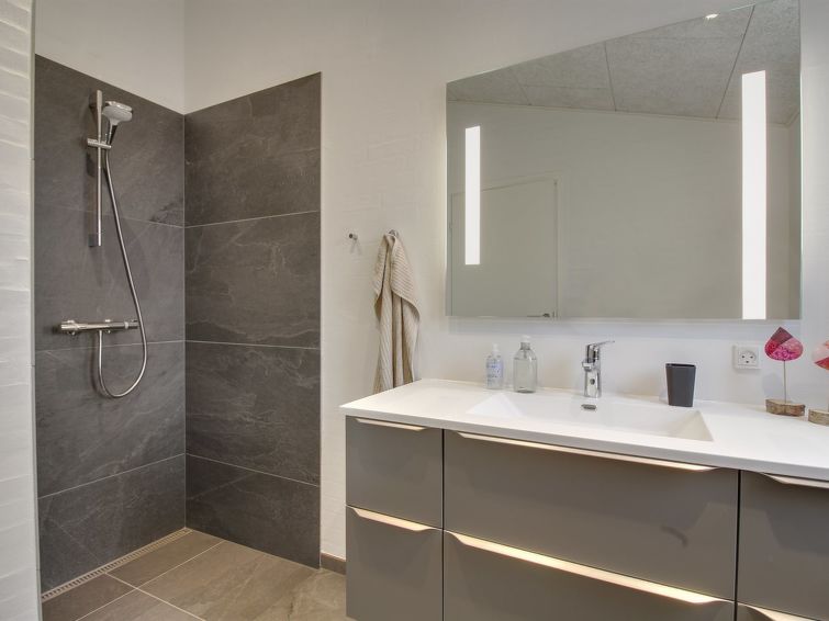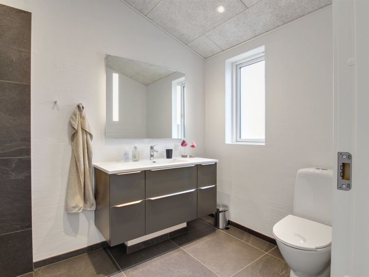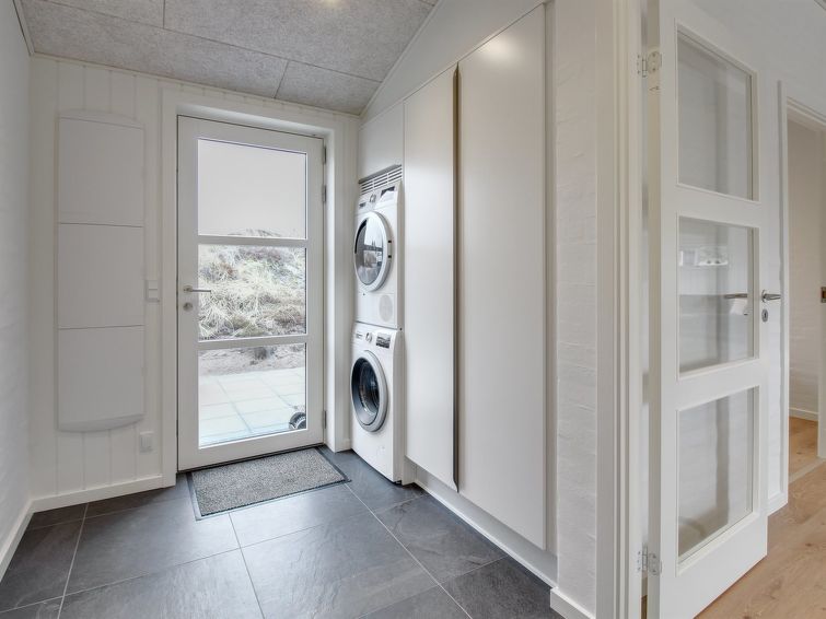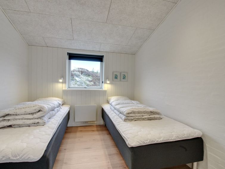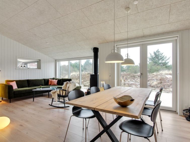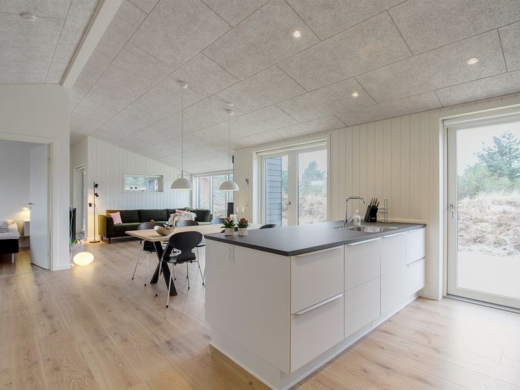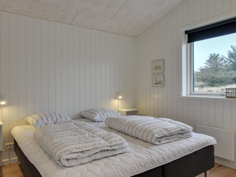 "Jirina" - 750m from the sea in Western Jutland", 3 rom hus 105 m2. Passer for 6 voksne. Stue med, TV. 1 rom med, 1 dobbeltseng. 1 rom med, 1 dobbeltseng. 1 rom med 2 senger. Kjøkken (stekeovn, oppvaskmaskin, 4 induksjonskomfyr, mikrobølgeovn, frys). 2 dusjer/WC. Terrasse 12 m2, dekt. Fasiliteter: Internett (trådløs LAN [WLAN]). Vennligst merk: røykfri bolig.