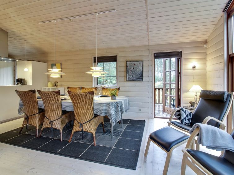 Enmannsbolig, bygget i 1999. 1.2 km fra sjøen. Privat: uberørt tomt 1'257 m2. Terrasse (50 m2), lekeplass (huske). I huset: vaskemaskin, tørketrommel. Daglivarehandel 2.5 km. Eieren godtar ikke noen ungdomsgrupper.