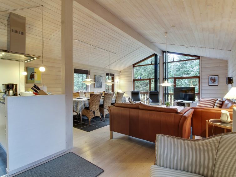 "Jo" - 1.2km from the sea in NW Jutland", 3 rom hus 86 m2. Passer for 6 voksne. Stue med, TV, CD-spiller, stereoanlegg og DVD. 1 rom med, 1 dobbeltseng. 1 rom med 2 senger. 1 rom med, 1 dobbeltseng. Kjøkken (stekeovn, oppvaskmaskin, 4 induksjonskomfyr, mikrobølgeovn, frys). Dusj/WC. Fasiliteter: Internett (trådløs LAN [WLAN]). Vennligst merk: røykfri bolig.