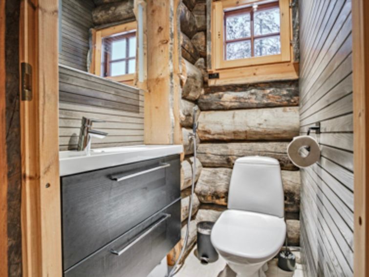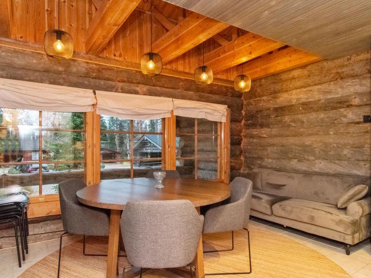 The cabin lies near by all the services, slopes, restaurant, grocery store and Ski Buss stop. Pyhä Ski resort slopes and cross-country skiing tracks can be seen from the windows. Pyhä-Luosto National Park summer trails start only 200 meters away from the cabin.
