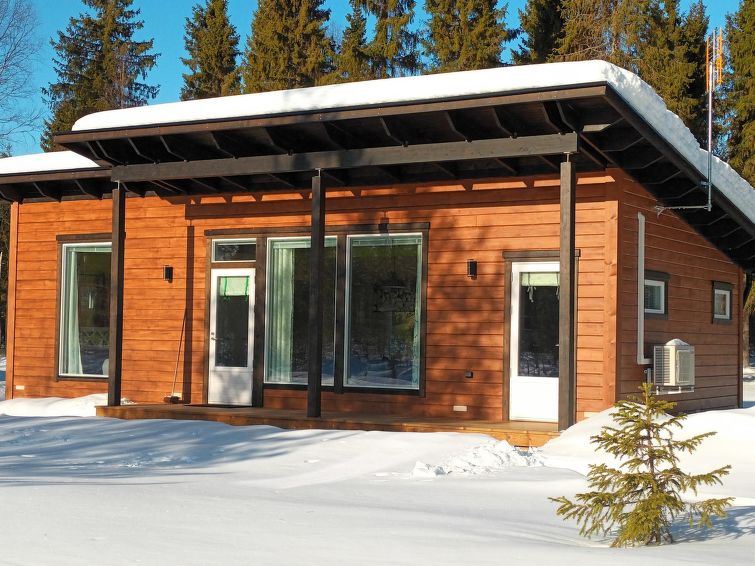 Modern cabin with many amenities by a lake. Very peaceful place, no visual contact to the neighbors. Only 20 m to the beach!
