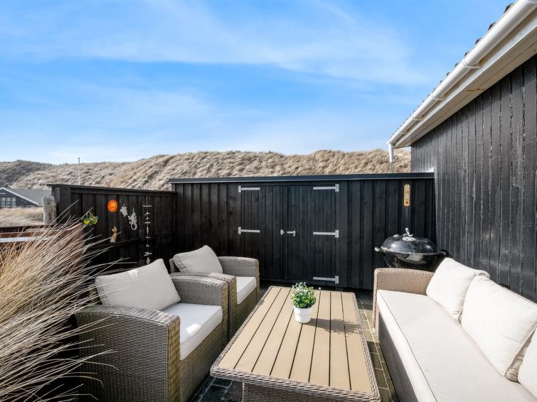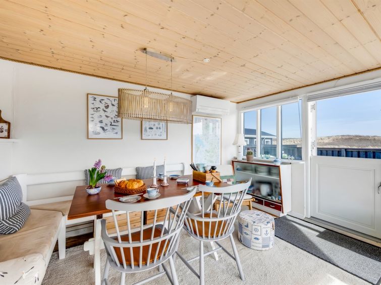 "Jorie" - 100m from the sea in Western Jutland", 2 rom hus 55 m2. Passer for 5 voksne. Stue med, TV. 1 rom med 1 seng og 1 x 2 køysenger. 1 rom med, 1 dobbeltseng. Kjøkken (4 kokeplater, stekeovn, mikrobølgeovn, frys). Dusj/WC. Fasiliteter: Internett (trådløs LAN [WLAN]). Vennligst merk: røykfri bolig. Max kjæledyr / hund tillatt 1 kjæledyr / hund tillatt.