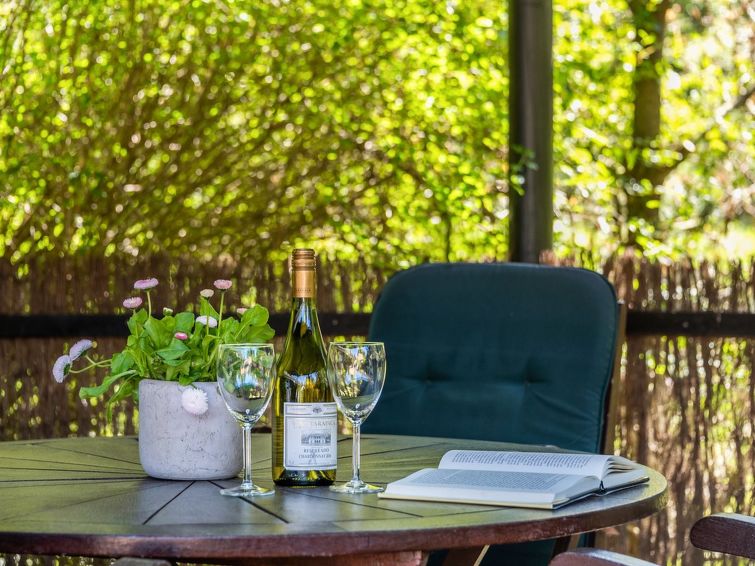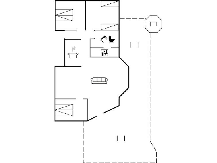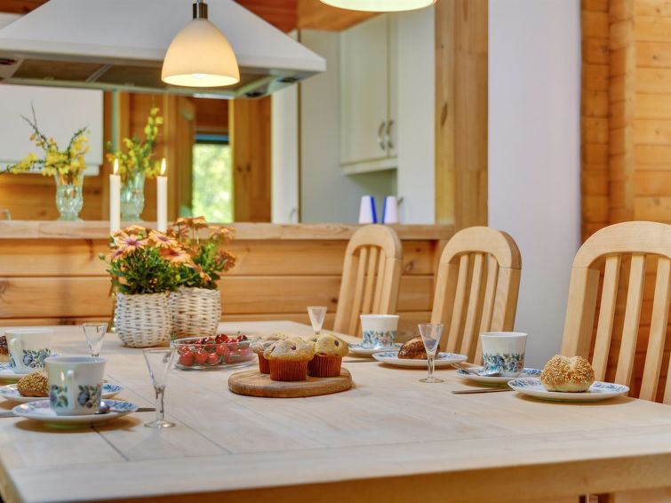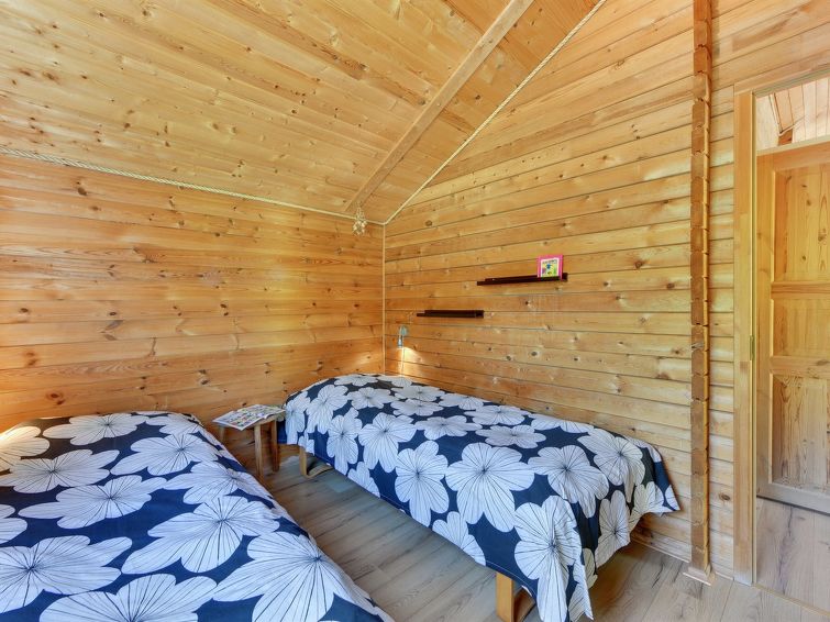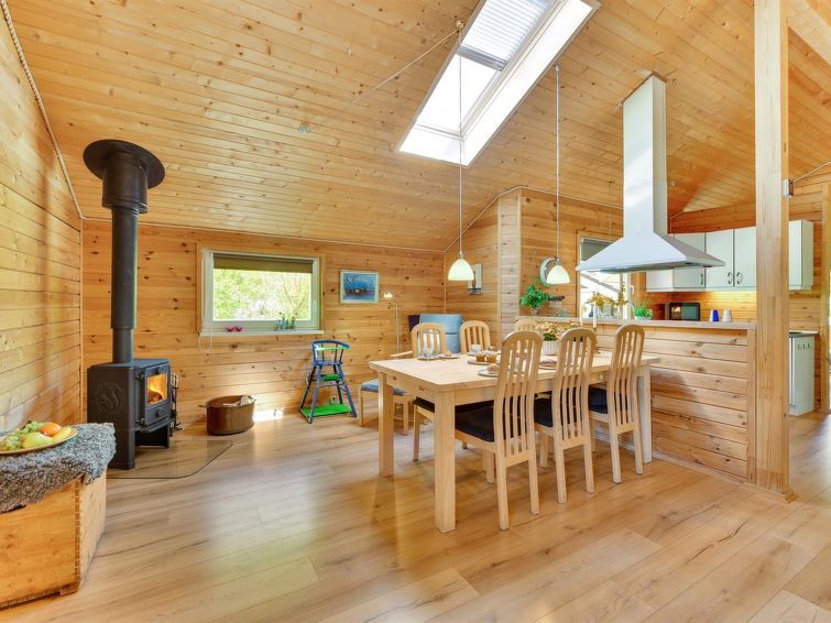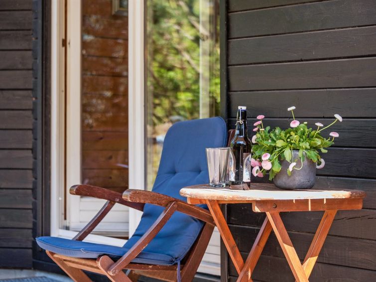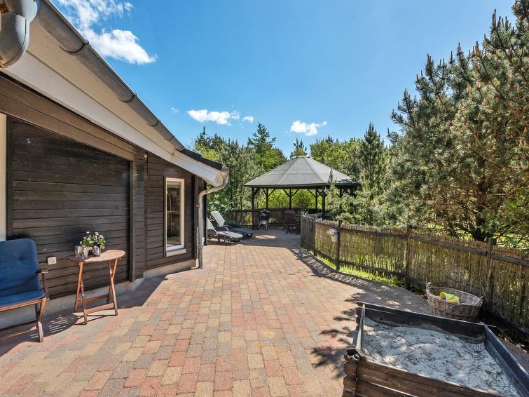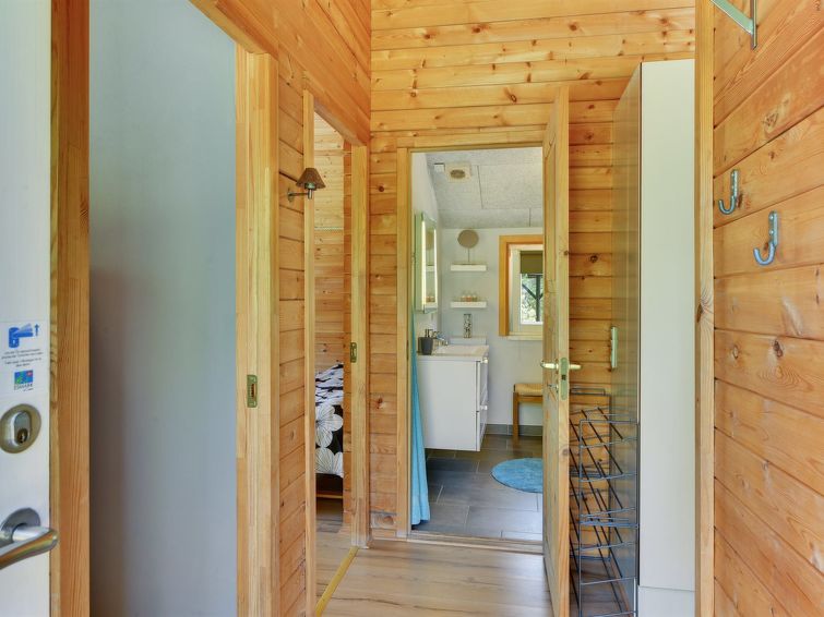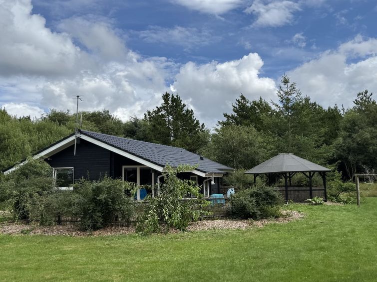 Enmannsbolig, bygget i 2001. 1.9 km fra sjøen. Privat: uberørt tomt 2'524 m2. Terrasse (75 m2), lekeplass (huske). I huset: badstu, vaskemaskin, tørketrommel. Parkering ved hbrukt. Daglivarehandel 2 km. Golfbane 800 m. Eieren godtar ikke noen ungdomsgrupper.