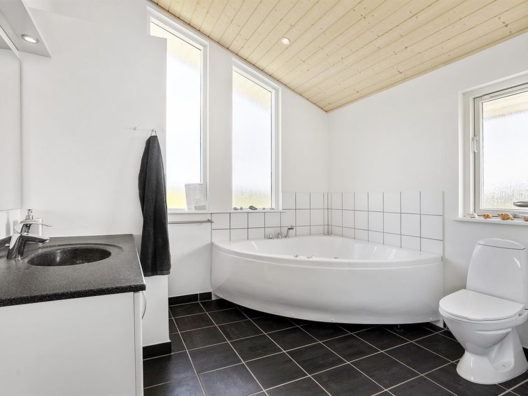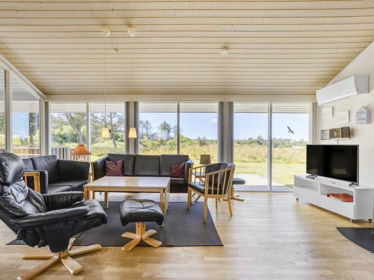 "Joris" - 1.5km from the sea in NW Jutland", 3 rom hus 114 m2. Passer for 6 voksne + 1 barn. Stue med, TV. 1 rom med, 1 dobbeltseng. 1 rom med 2 senger. 1 rom med 2 senger. Kjøkken (stekeovn, oppvaskmaskin, 4 keramiske kokeplater, mikrobølgeovn, frys). 2 dusjer/WC, boblebad. Fasiliteter: høy barnestol. Internett (trådløs LAN [WLAN]). Vennligst merk: røykfri bolig. Max kjæledyr / hund tillatt 1 kjæledyr / hund tillatt.