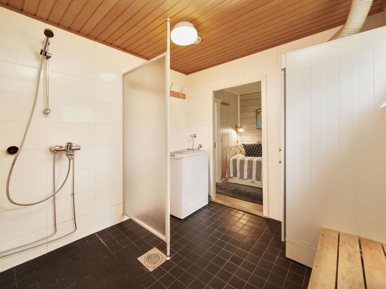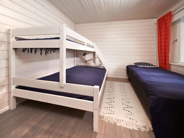 Planed log cabin, living room, kitchenette, double bed in the bedroom, separate bed and bunk bed (lower bed is 120 cm wide) in another bedroom, sauna, spreadable bed in the dressing room, washroom and separate WC.