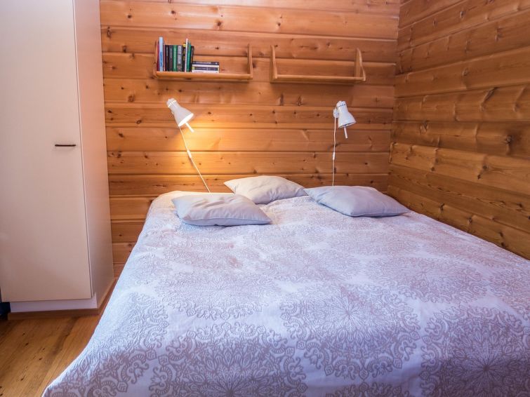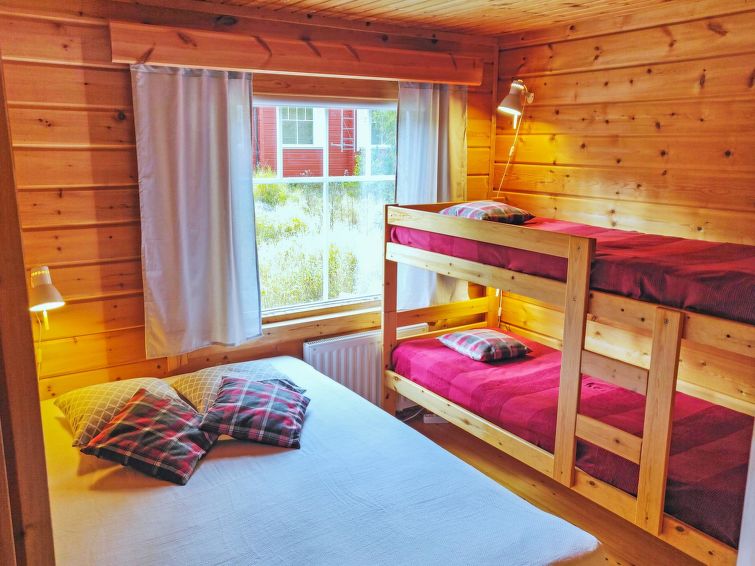 Log cottage, built in 1989, bedroom 1: 2 beds, bedroom 2: a bunk bed and a double bed (width 140 cm), combined kitchen/living room, electric sauna.